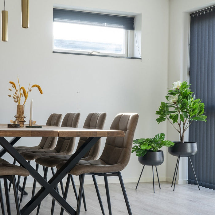 De ronde Evie staande bloempot van Artichok is gemaakt van stevig metaal en geeft daardoor een industriële en moderne uitstraling aan je interieur.