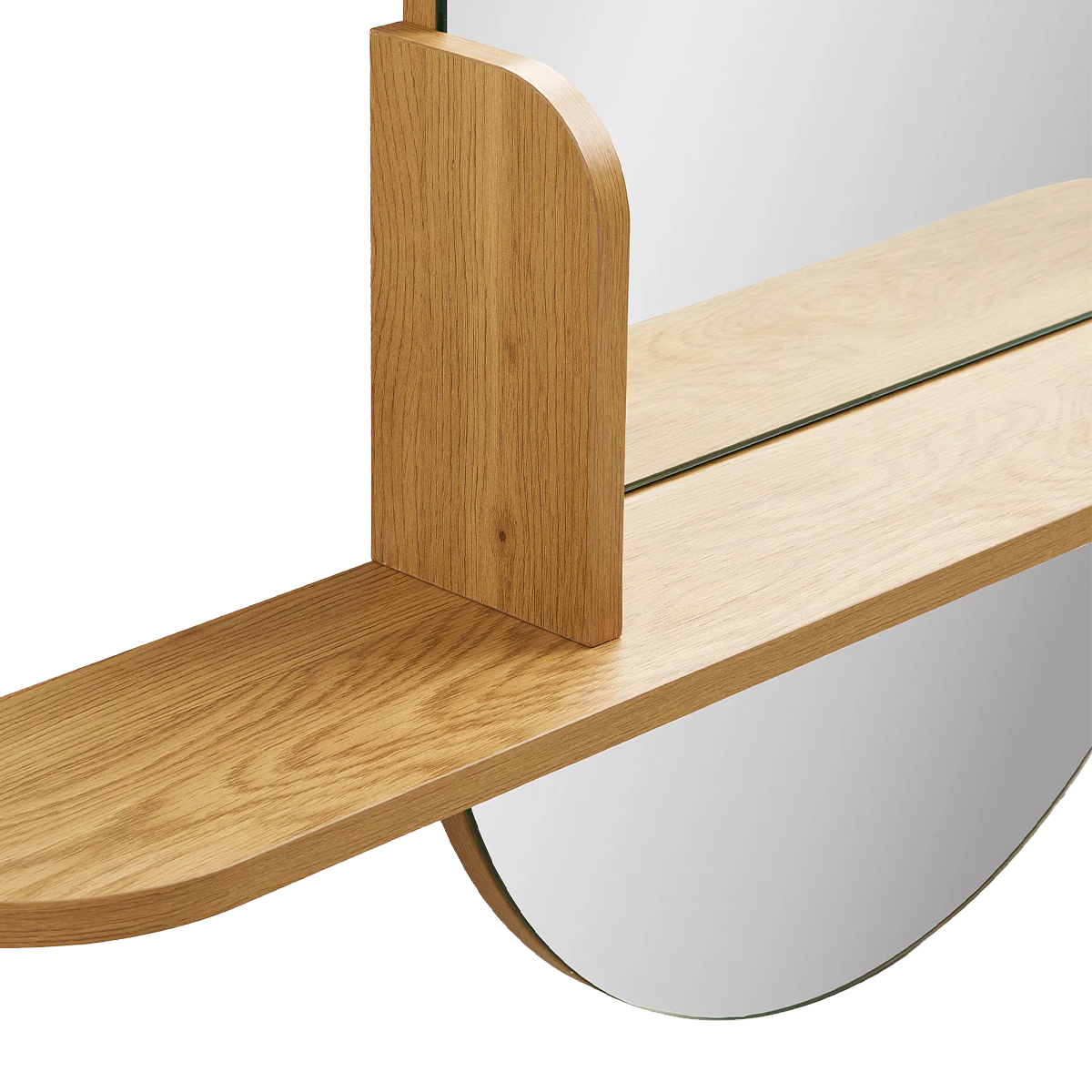 Het elegante ovale formaat geeft je interieur een zachte, organische uitstraling, terwijl het handige houten plankje onderaan extra ruimte biedt voor kleine spullen of decoratie. Denk aan een vaasje, parfumflesjes of je sleutels bij de voordeur. Deze spiegel is een echte blikvanger in de hal, slaapkamer of woonkamer.
