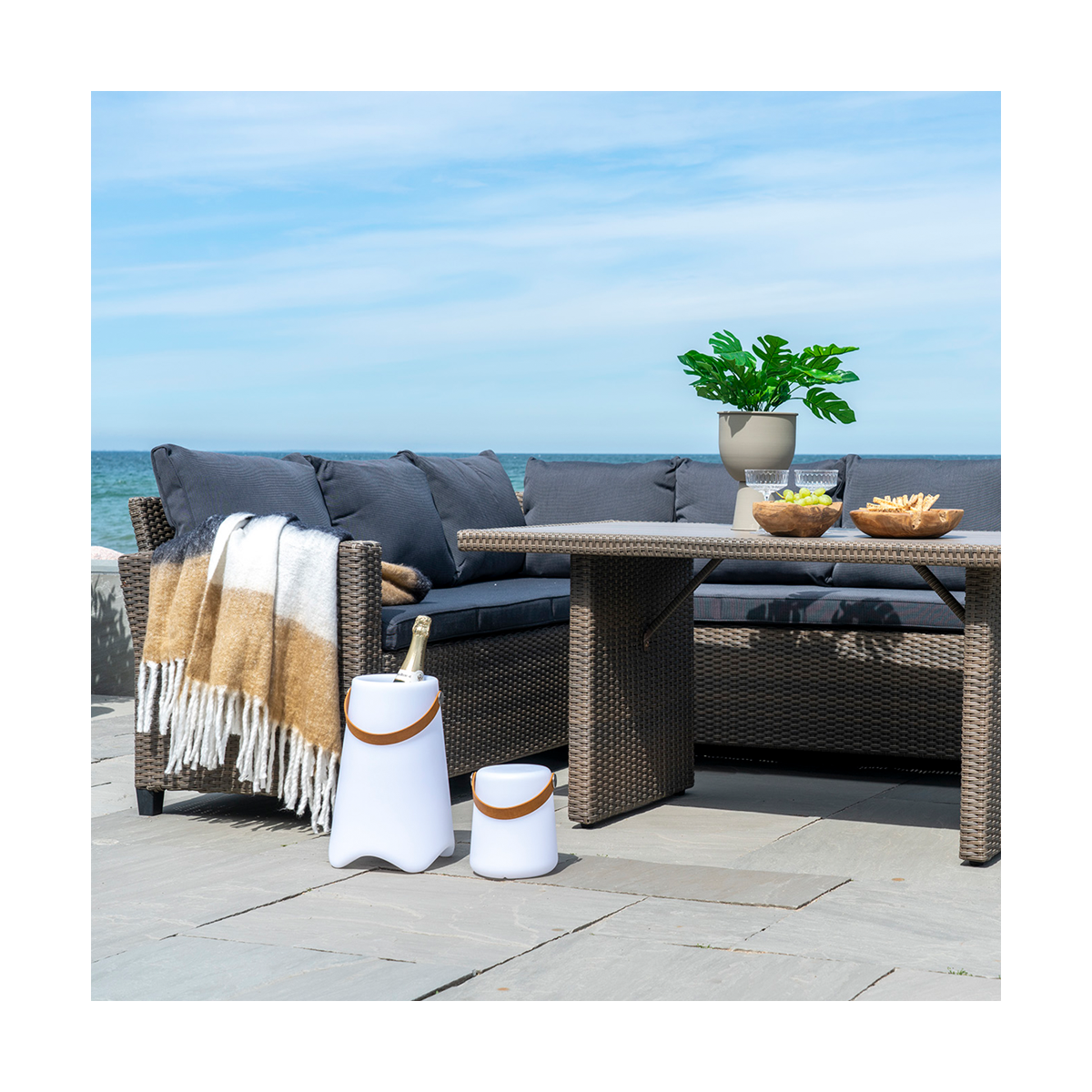 Deze tuinlamp is gemaakt van kunststof en heeft een kunstleren handvat. De lamp heeft zelf een witte kleur maar straalt gezellig geel sfeerlicht uit wanneer hij aan staat. Door het kunstleren handvat kan je de lamp eenvoudig oppakken en op een andere plek neerzetten. De Huub tuinlamp wordt geleverd inclusief led-lampje, wat een duurzame lichtbron is. De lamp werkt op batterijen dus het is een handige manier om je tuin of terras te verlichten: geen gedoe met snoeren en lichtpunten die te ver weg zitten. Let op: de lichtbron kan niet worden vervangen.