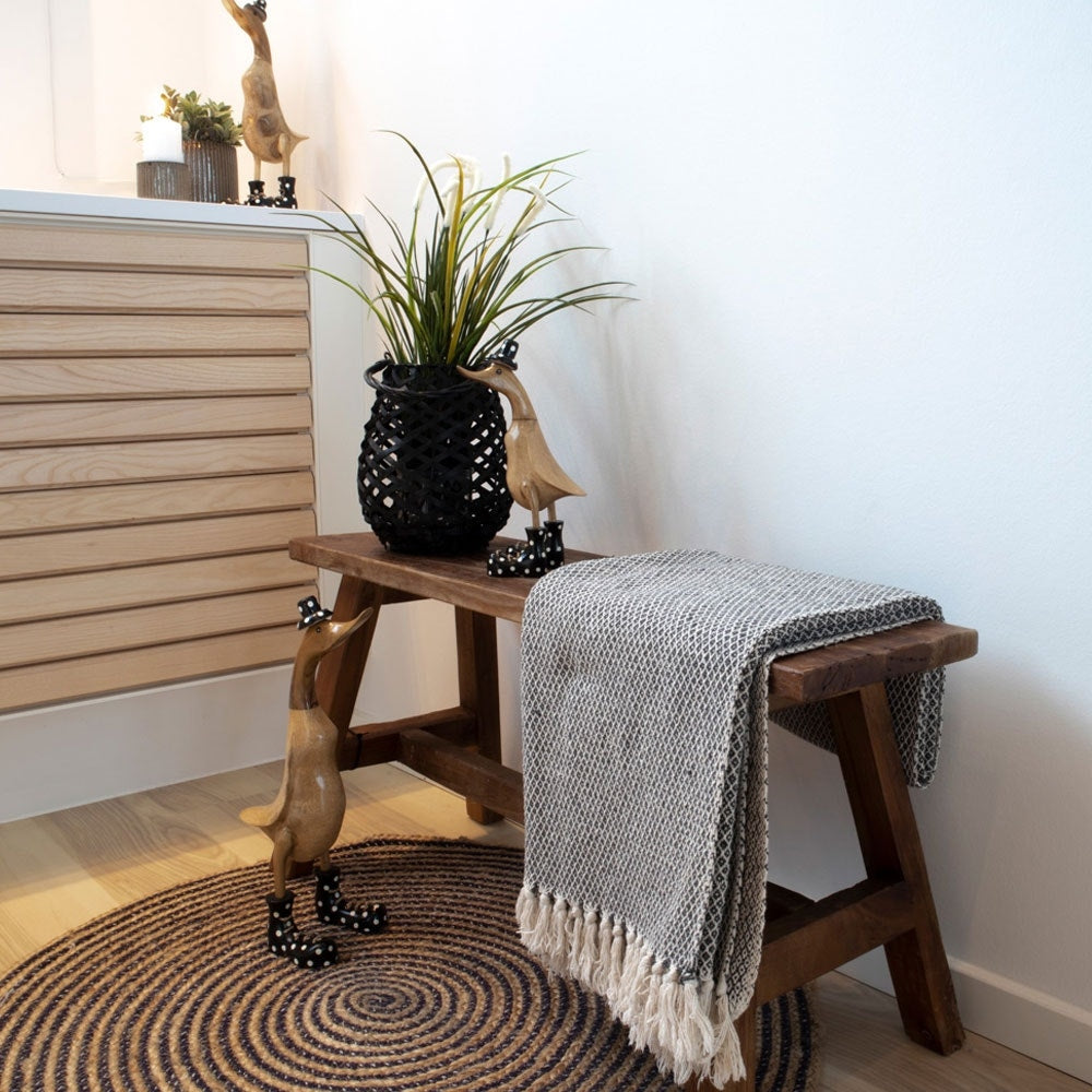 Het bankje is volledig gemaakt van teakhout en kan daardoor wel tegen een stootje. Gebruik het bijvoorbeeld als decoratiebankje of zet het neer in de hal, zodat je gemakkelijk je schoenen aan en uit kunt doen. Jij weet vast een handig plekje voor dit leuke bankje te vinden, toch? Bovendien zijn ze verkrijgbaar in twee afmetingen.