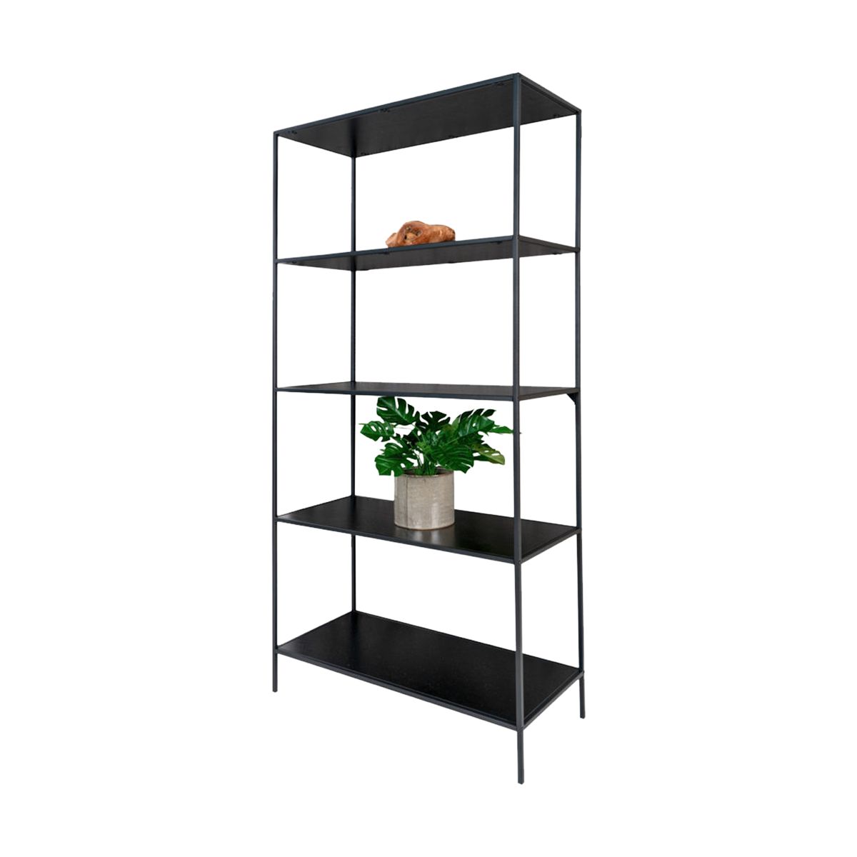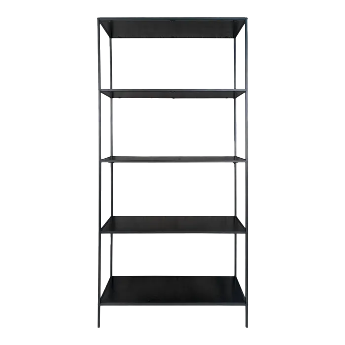 Decoreer de Karen met leuke planten en fotolijstjes om de kast te personaliseren. Doordat de kast gemaakt is van metaal met zwart houten planken geef je de ruimte een industriële en stoere sfeer. De Karen kast biedt je voldoende opbergruimte met haar vijf planken.