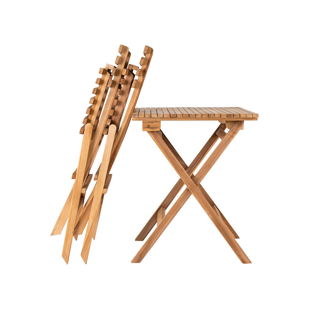 Met de Lenneke houten bistroset van Artichok heb je alles wat je nodig hebt voor een gezellige zitplek in de tuin.