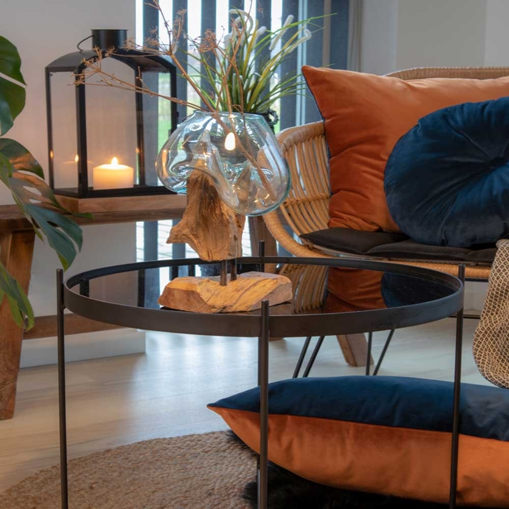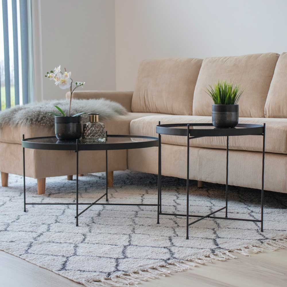 Met deze salontafel van Ø70 cm heb je voldoende ruimte om je hapjes en drankjes neer te zetten. De tafel is voorzien van een metalen frame en een rond glazen blad. Het glazenblad heeft een donkere afwerking wat een luxe uitstraling geeft. De metalen poten zijn verbonden met een kruis, voor extra stevigheid. Het tafeltje is licht van gewicht en dus gemakkelijk te verplaatsen. Plaats de tafel waar jij hem op dat moment nodig hebt. De Liliana salontafel is ook goed te combineren met verschillende bijzettafels.