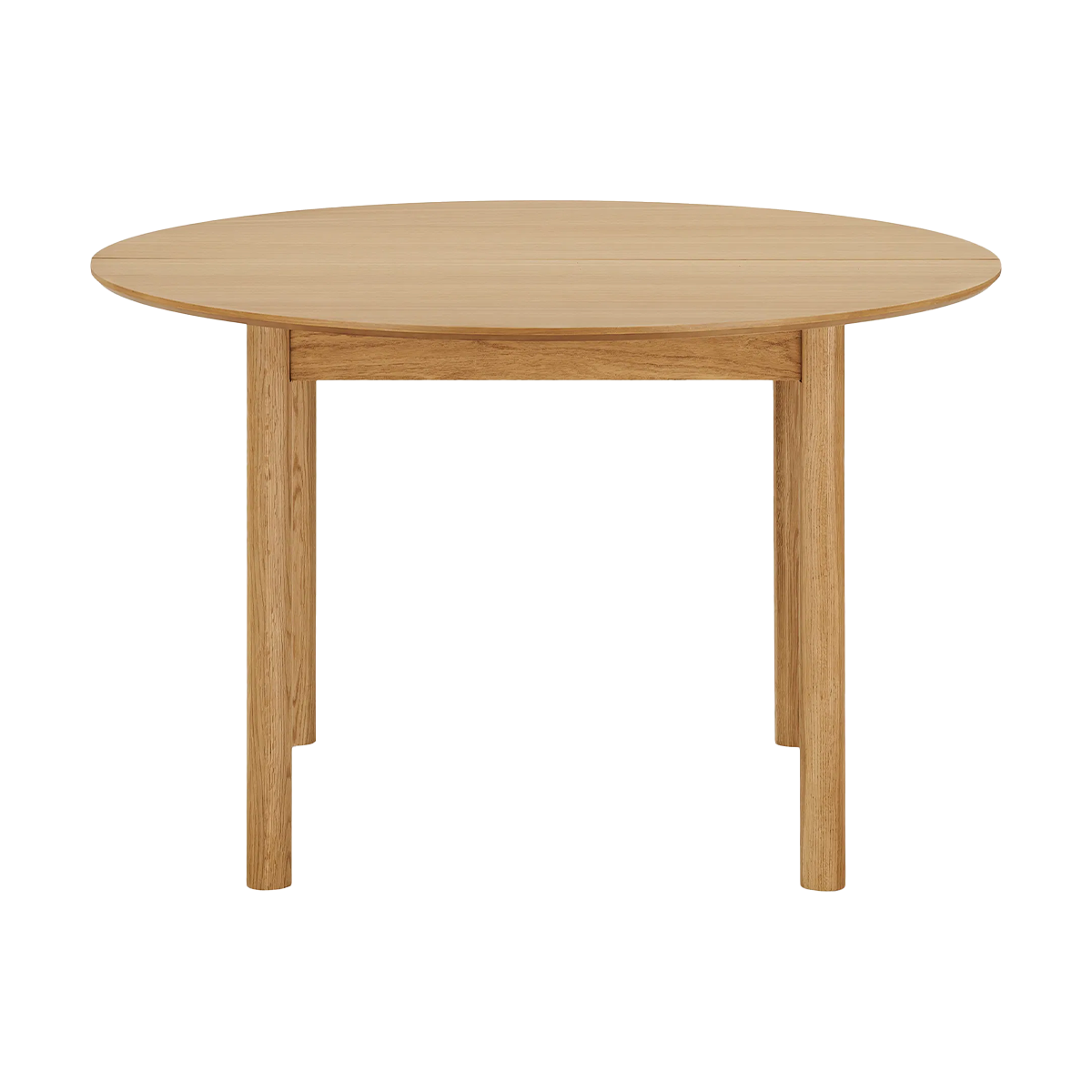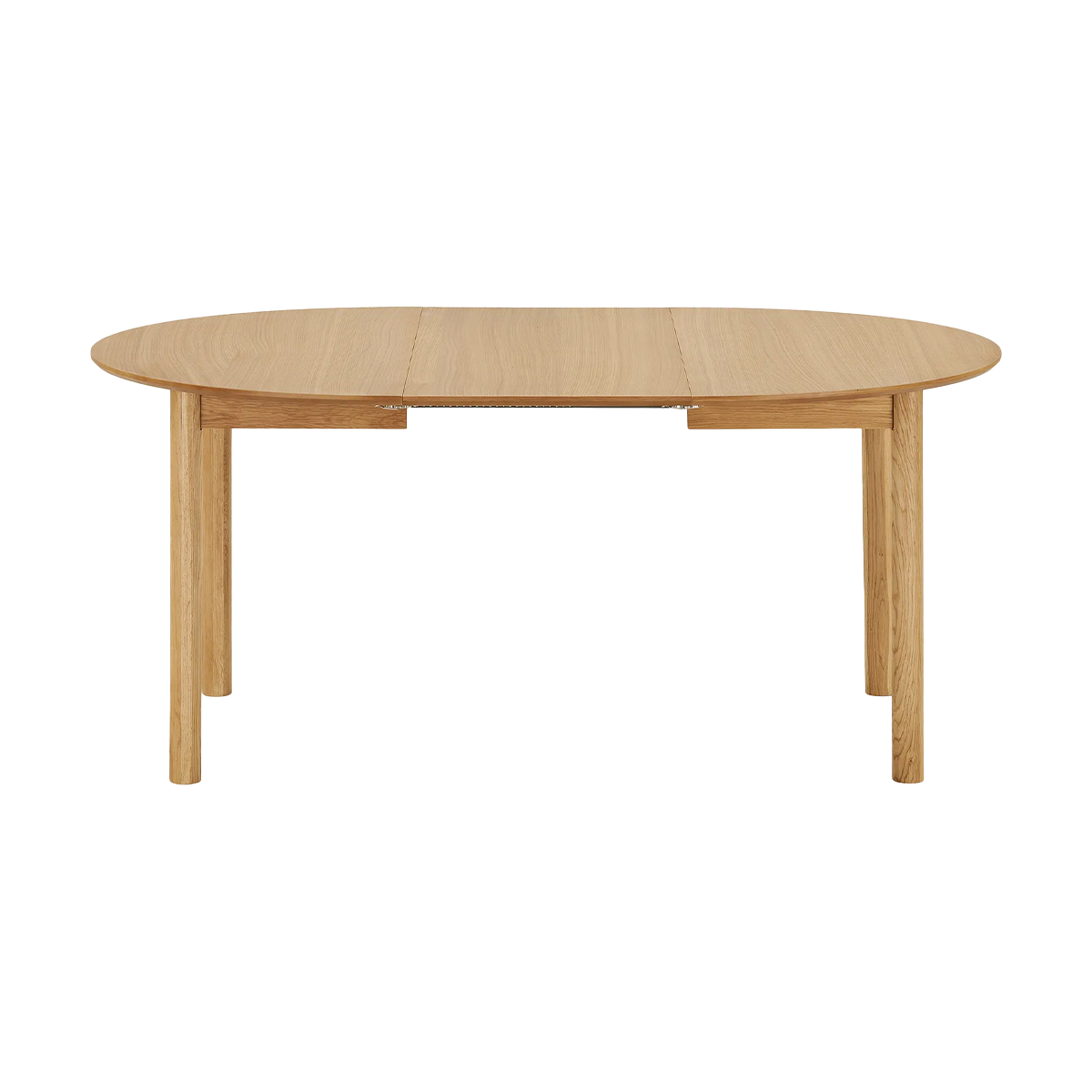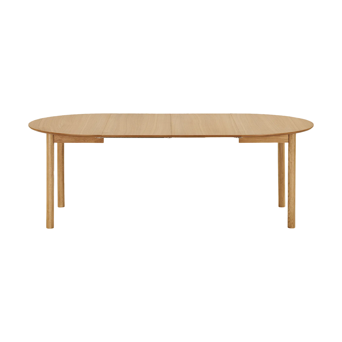 Deze ronde tafel van ø120 cm is ideaal voor intieme diners met 4 personen. Heb je meer ruimte nodig? Dan schuif je de tafel eenvoudig uit tot 170 of zelfs 220 cm. In de grootste opstelling biedt de tafel plaats aan 6 tot 8 personen, zeker wanneer je ook aan de hoofdeinden een stoel plaatst. De tafel is gemaakt van naturel eikenhout en straalt warmte en rust uit. De ronde vorm maakt de tafel uitnodigend en gezellig, terwijl de ovale variant in uitgeschoven stand een elegante en ruimtelijke uitstraling geeft. Zo geniet je van een tafel die zich moeiteloos aanpast aan elke gelegenheid, van dagelijks gebruik tot feestelijke etentjes met vrienden en familie.