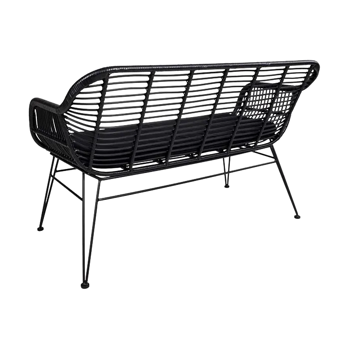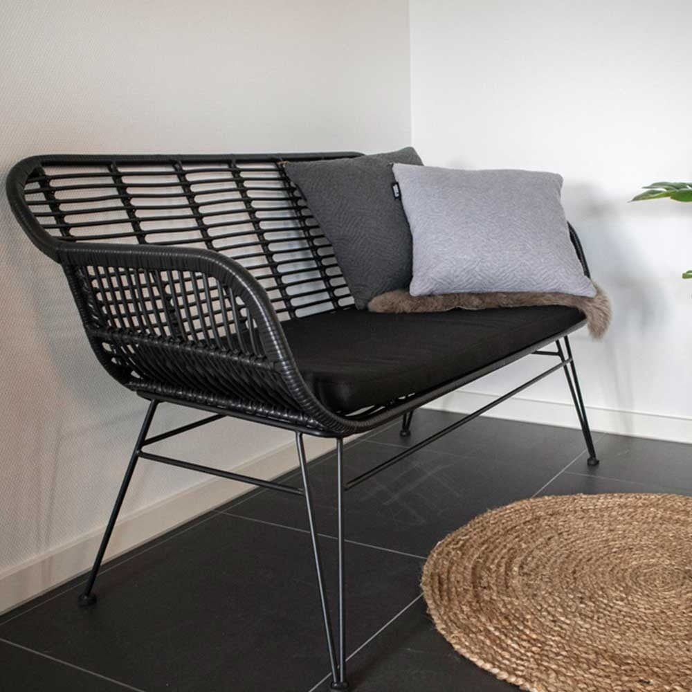 Artichok Madelein rotan tuinbank zwart - met zitkussen