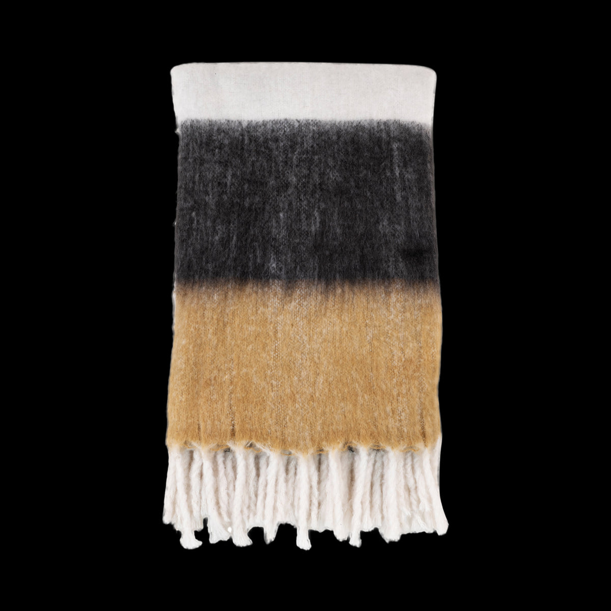 Deze plaid is gemaakt van acryl: een sterke en zachte synthetische vezel die veel op wol lijkt. De stof is isolerend en houdt je dus lekker warm op een koude winterdag. De afmetingen van de plaid zijn 170 bij 130 cm. Dit grote formaat maakt het de ideale deken voor tijdens het tv kijken, maar je kan hem ook decoratief over de leuning draperen of op de slaapkamer gebruiken. Met het rustieke gestreepte patroon in de kleuren wit, bruin en zwart voegt de Sinta plaid een subtiel vleugje kleur toe aan je interieur.
