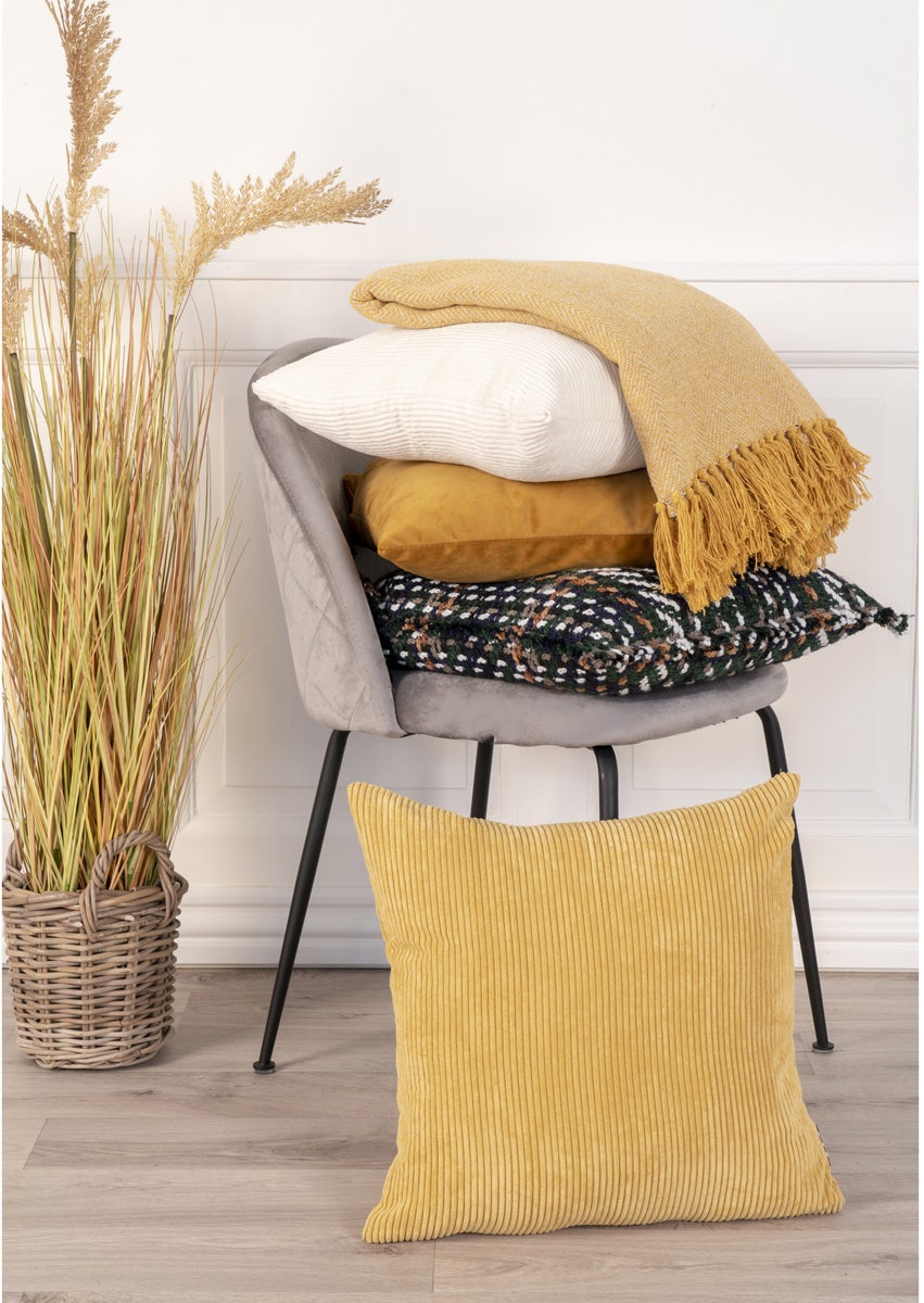 - De hoes van het kussen is van zacht ribfluweel