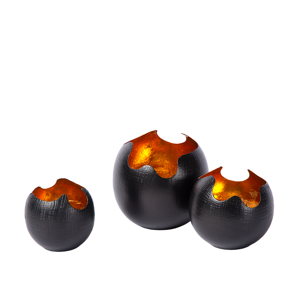 Atmooz Kotori - Theelichthouder - Set van 3 - Zwart & Goud - Metaal