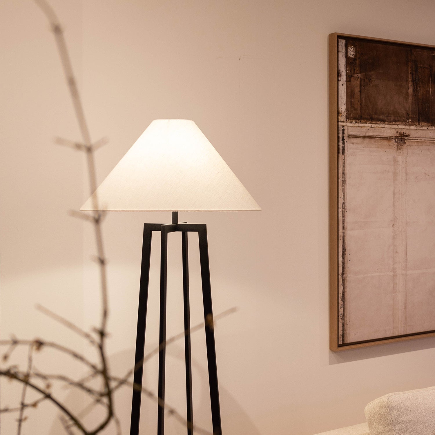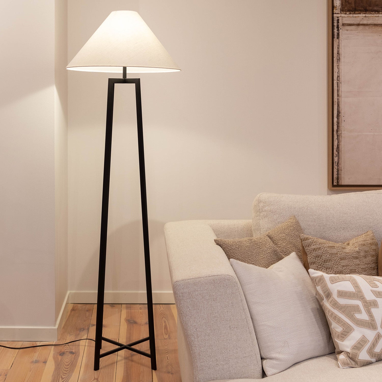 Atmooz Leoni - Staande Lamp - Zwart - Witte Linnen Lampenkap - 170 cm Hoog - Metaal - E27 Fitting - 60W