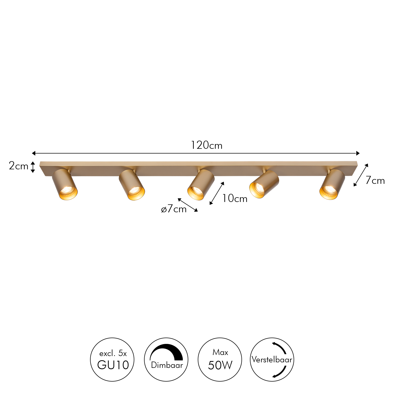 Atmooz Nuo 5 - Goud - Ø 7 - 5 Kantelbare Spots - 50W - Luxe Opbouwspot
