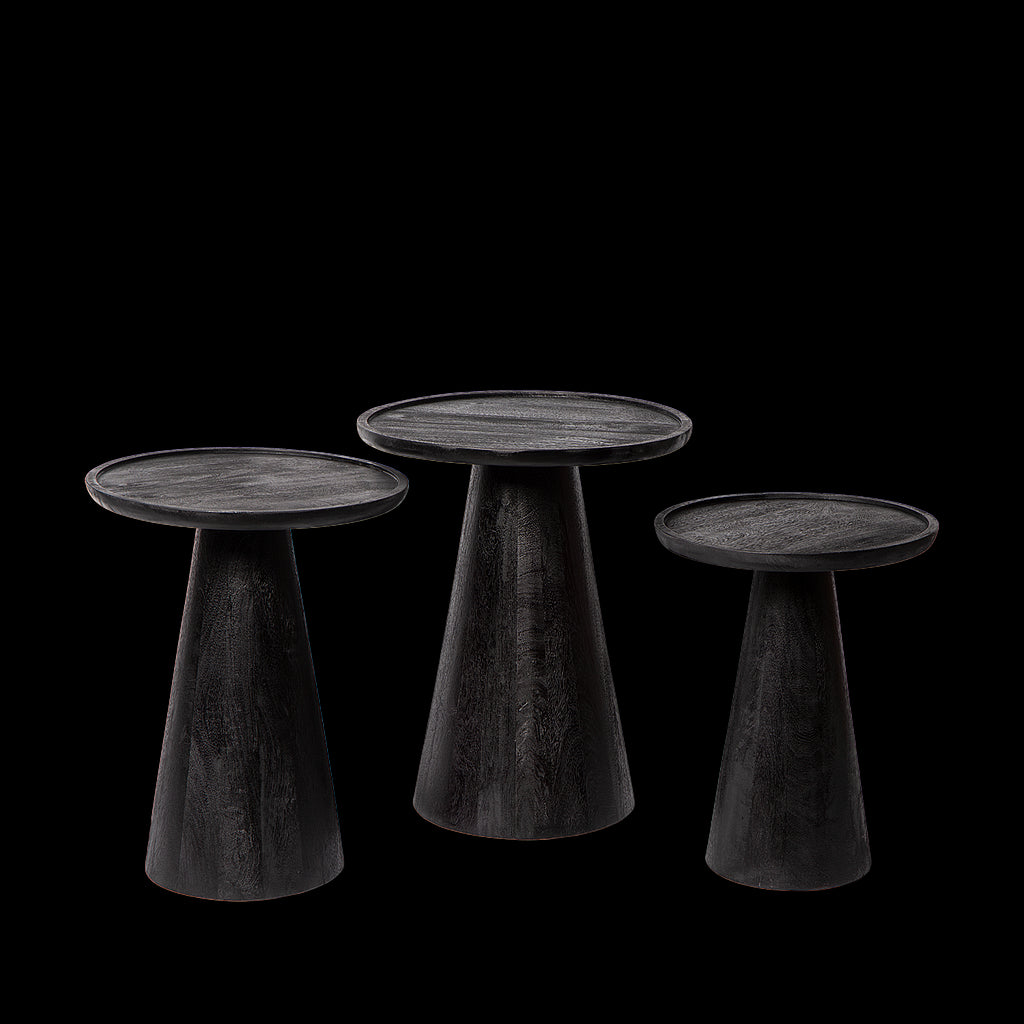 Atmooz Ultimo Bijzettafel Set van 3 - Ø46|41|36 cm - Zwart Mangohout