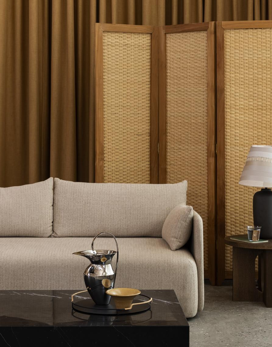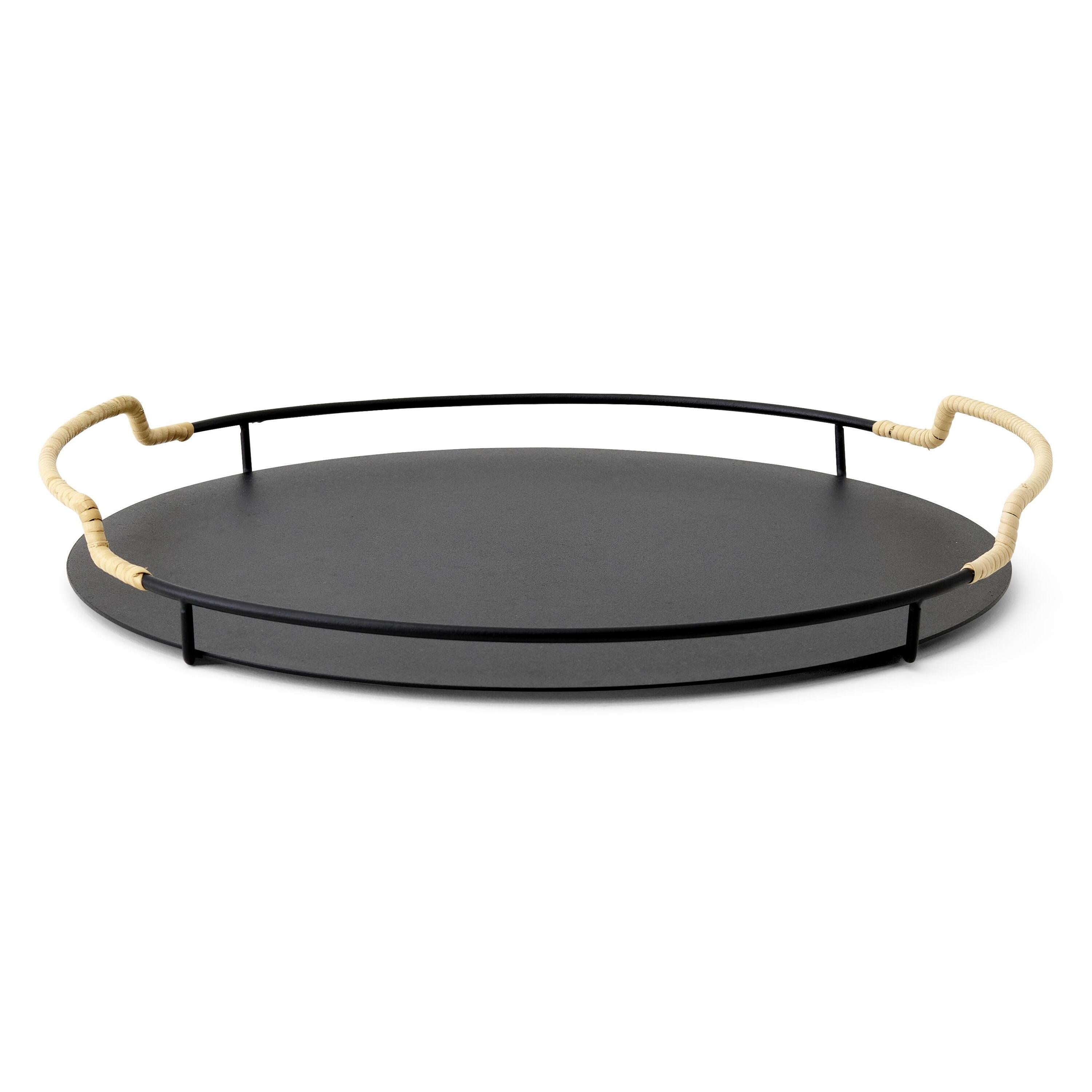 Audo Copenhagen Balcony dienblad zwart, gemaakt van Rattan.