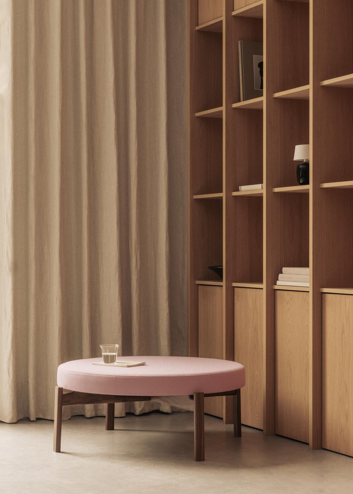 Audo Copenhagen Passage poef Ø99 naturel eiken Bouclé Beige 02