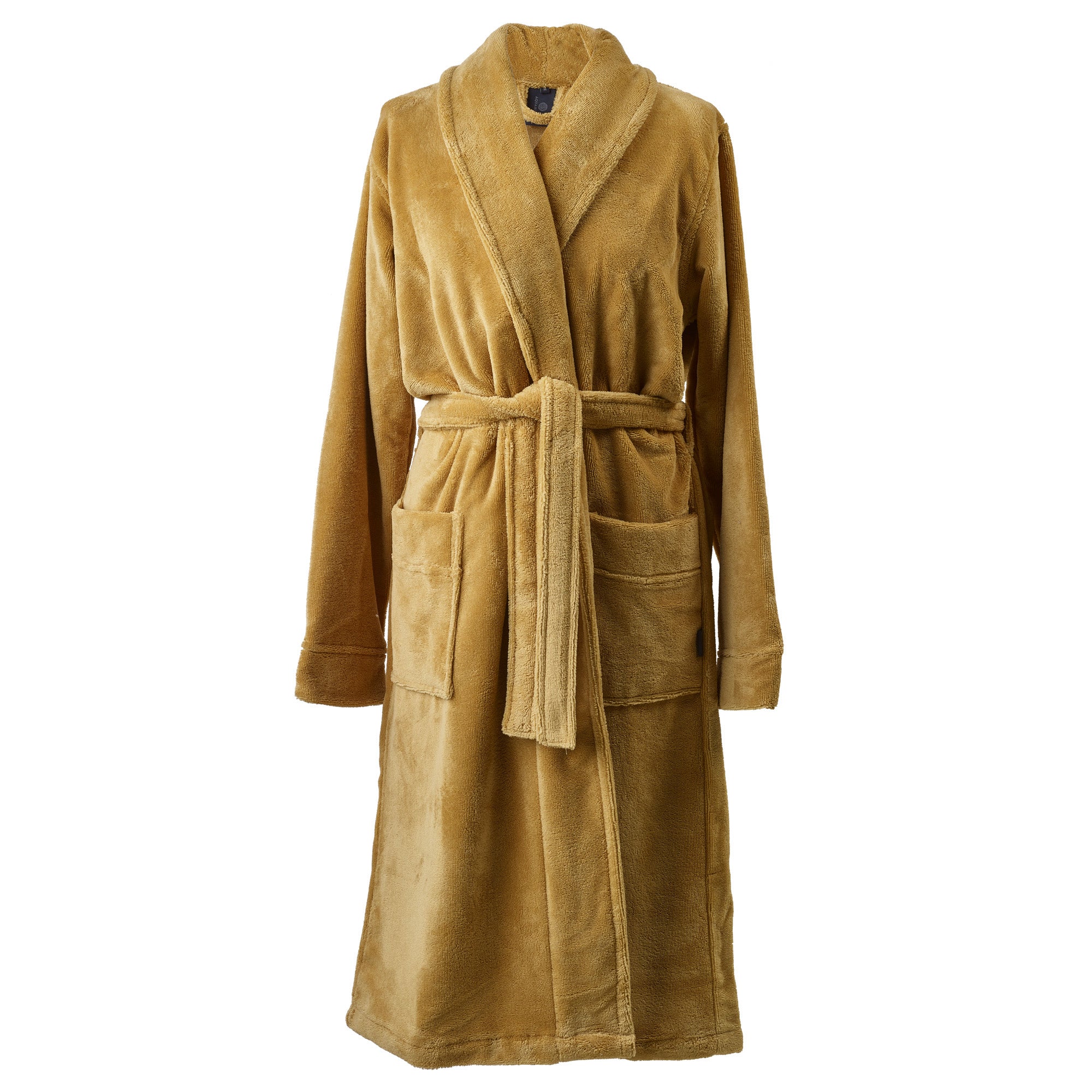De EINAR badjas van Aquanova is een comfortabele badjas met een goede vochtopname door de bamboe binnenzijde. Bamboe neemt uitstekend vocht op door microgaatjes in de vezels en reguleert de lichaamstemperatuur beter dan andere stoffen. De badjas voelt heerlijk zacht aan de buitenzijde en heeft een mooie 'Regular Fit' pasvorm. Met diepe steekzakken, een ceintuur en mooie sjaalkraag kunt u uren doorbrengen in deze badjas. Einar badjas Artikelnummer: EINBG-443 Kleur Ochre-443 (geel / oker) Materiaalinformatie Binnenzijde: 60% bamboo en 40% katoen Buitenzijde: 100% polyester 330 gr/m² Wasvoorschriften De badjas is machine wasbaar op 40 graden Drogen op een lage stand