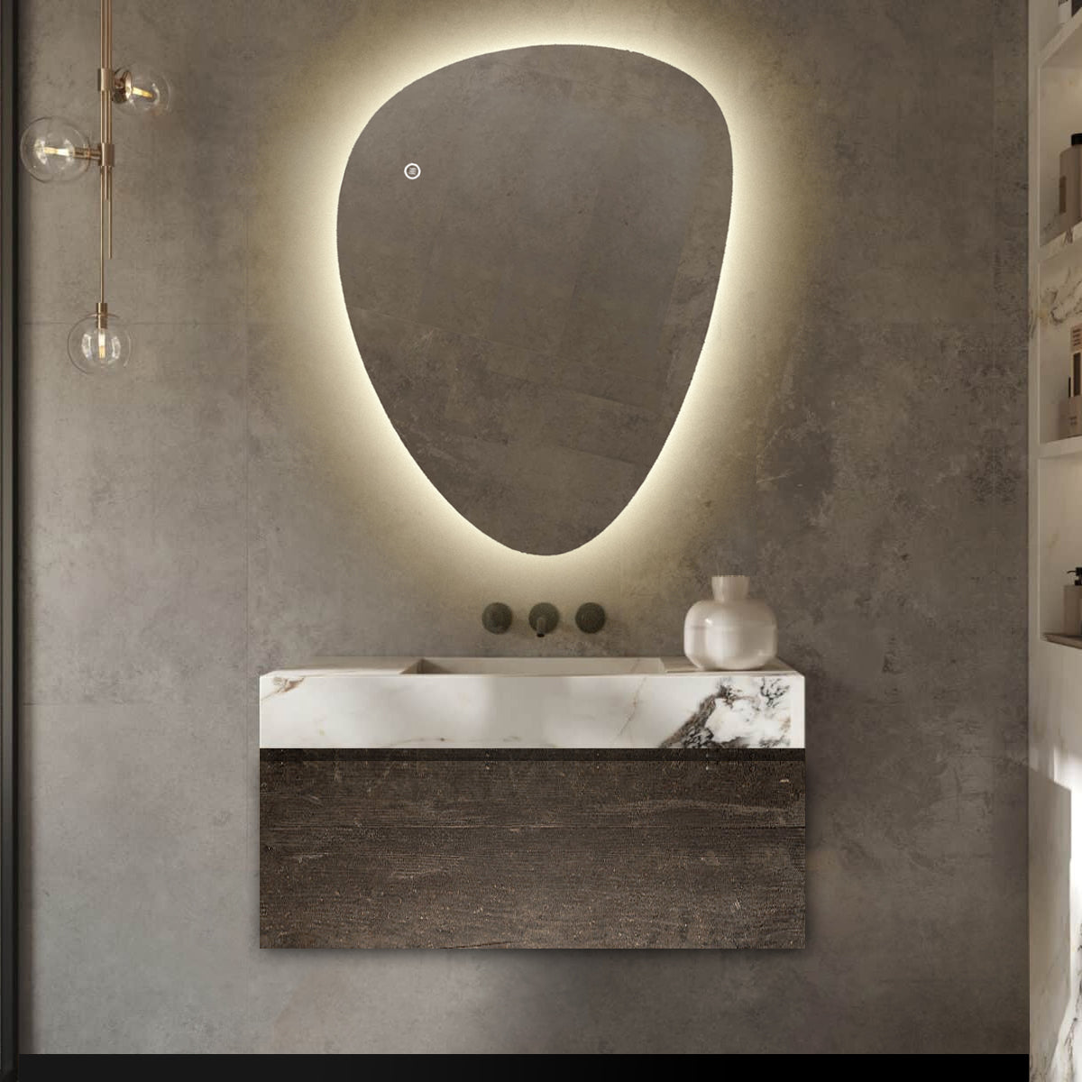 Badkamerspiegel Asymmetrisch - Organisch met Verlichting - 60 x 40 cm