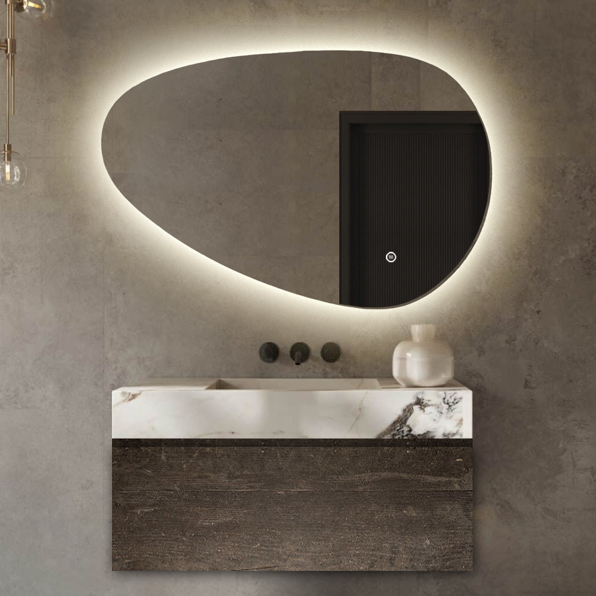Badkamerspiegel Asymmetrisch - Organisch met Verlichting - 90 x 60 cm