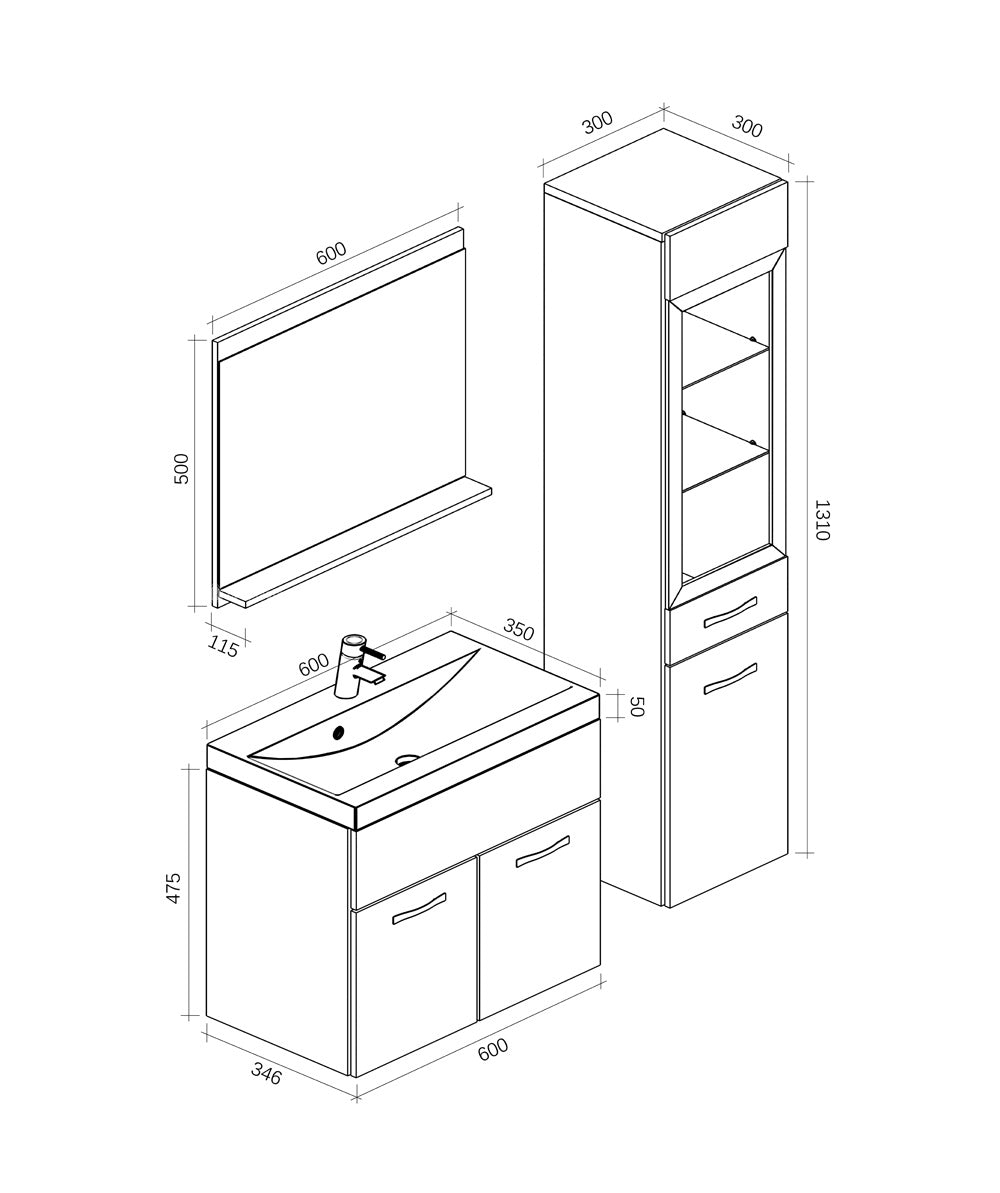 Badplaats Badkamermeubel Set Rio LED 60 x 35 cm - Eiken