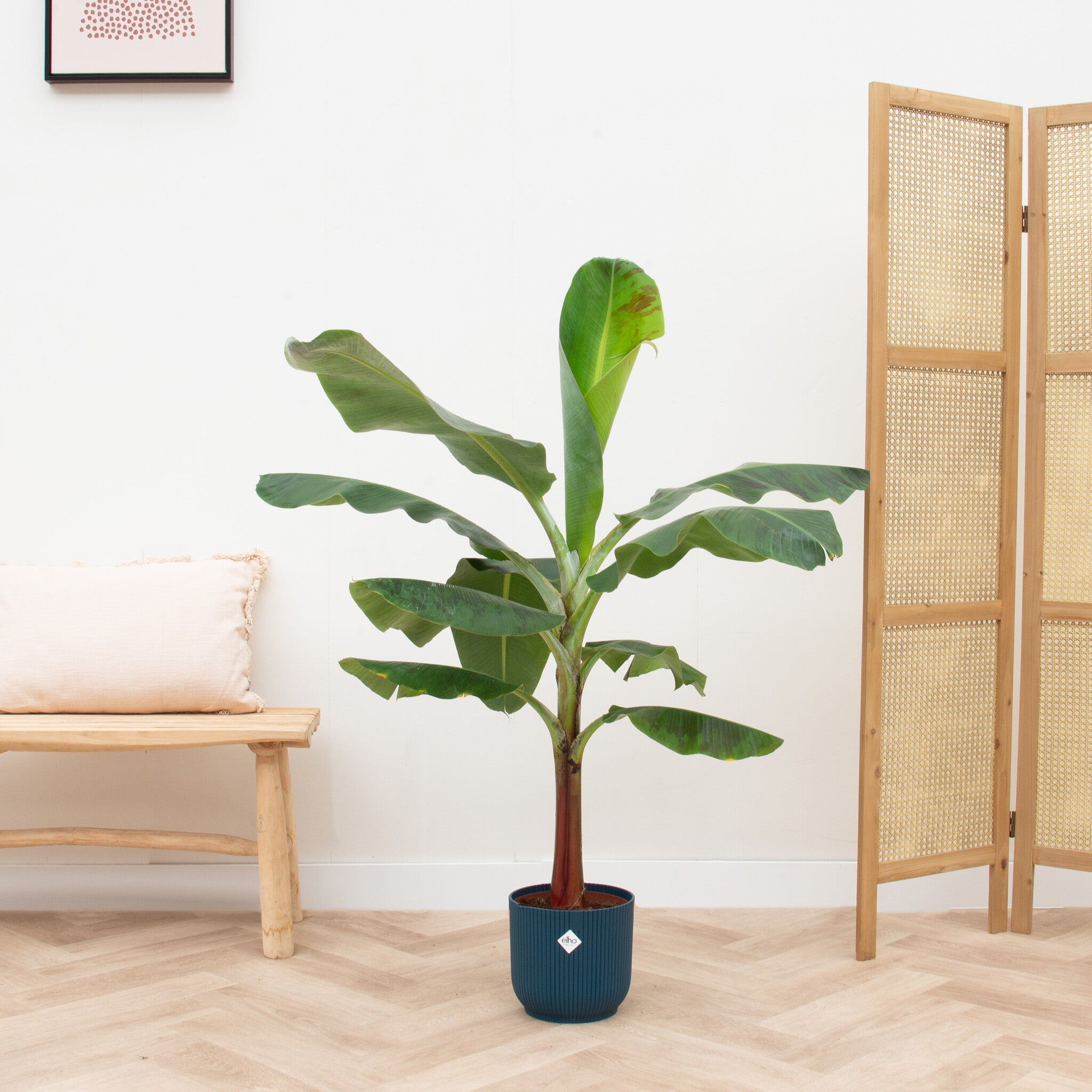 Bananenplant (Musa) + elho Vibes Fold Round blauw Ø22 - 120cm