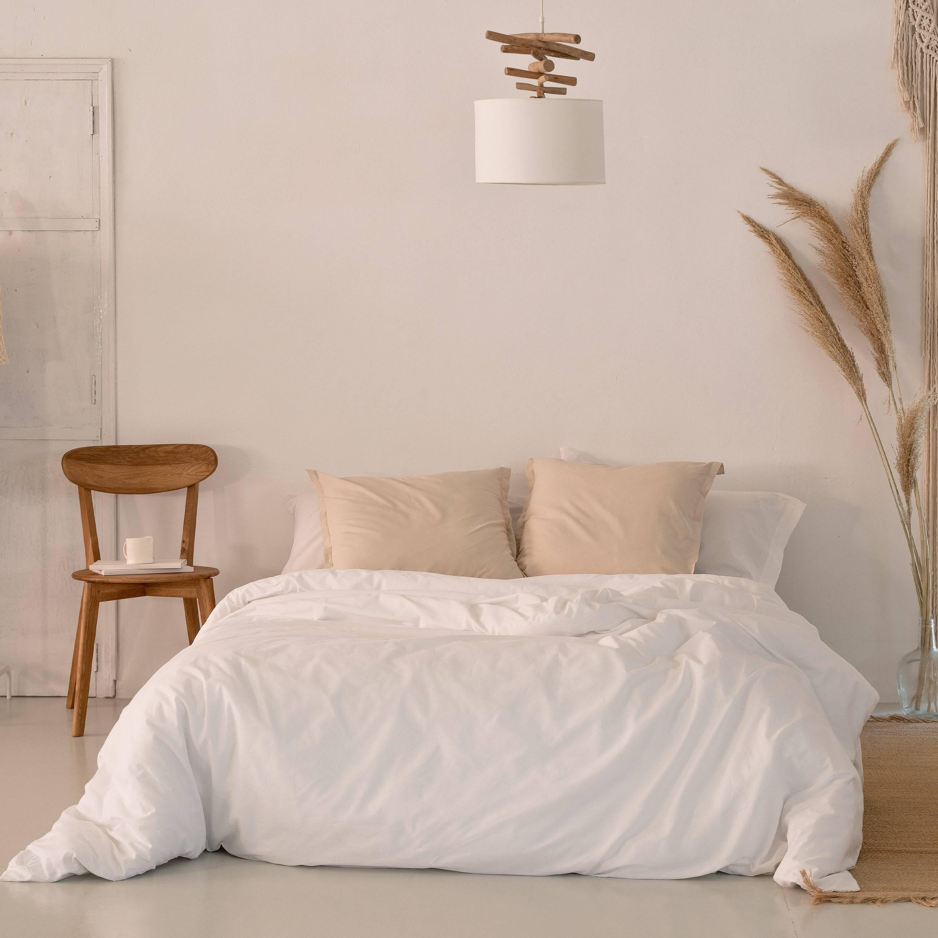 - Effen dekbedovertrek: Een tijdloos ontwerp dat rust en eenvoud brengt in elke slaapkamerstijl – voor een gezellige en ontspannen sfeer.