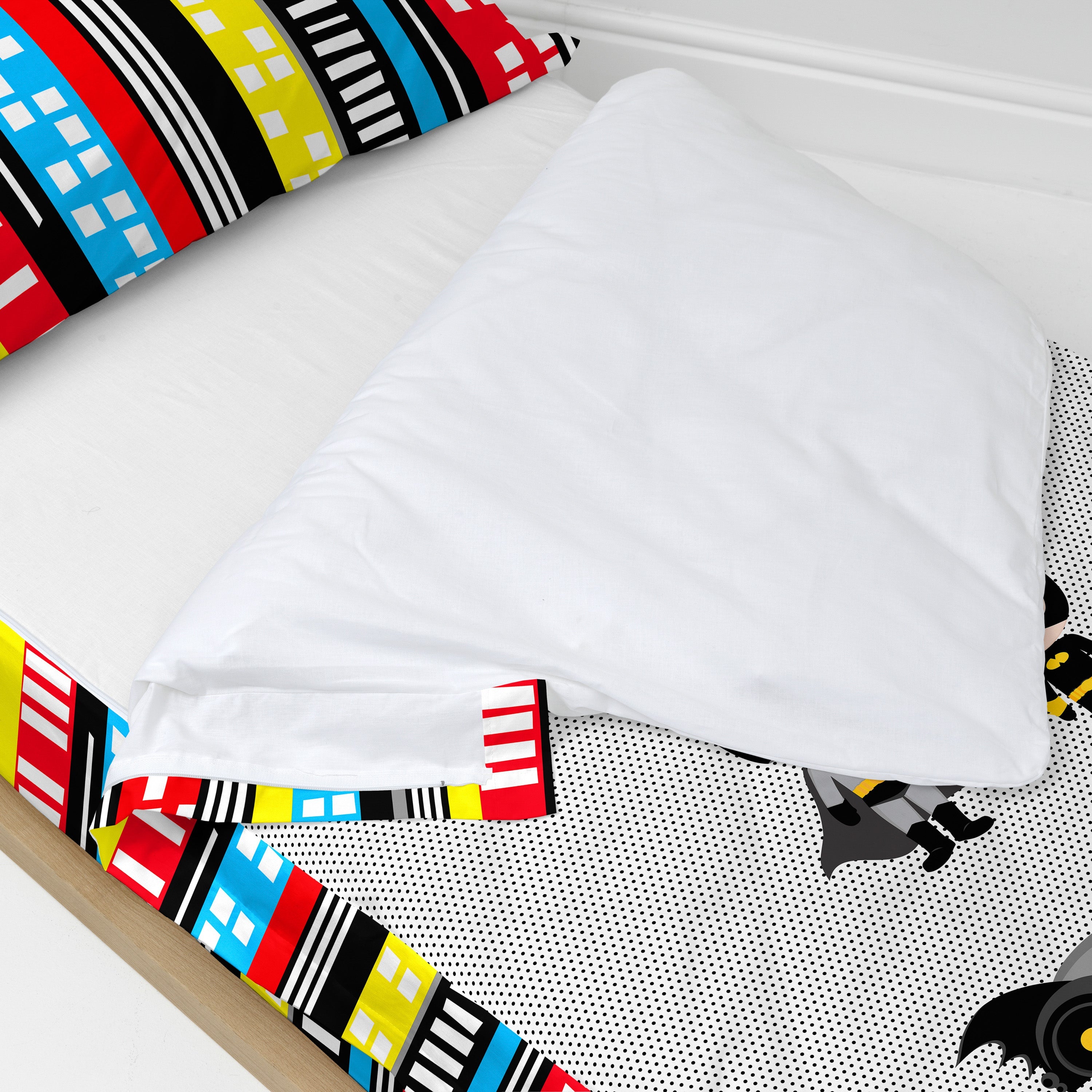 Ben jij klaar om je favoriete superheld te zijn? Met het BAT dekbedovertrek uit de Mr. Fox collectie wordt elke nacht een avontuur! Felle kleuren, superheldenpatronen en veel fantasie en verbeelding. Gemaakt in Spanje met 150 thread count natuurlijk katoen, voor het comfort van je kind. Dankzij high-definition digitale bedrukking behouden alle producten in de set dezelfde moderne kleur als de eerste dag. Uitneembaar: Voor gemakkelijk wassen, of voor gebruik in de zomer, is er een verborgen ritssluiting aan de achterkant waarmee we de vulling comfortabel kunnen aan- en uittrekken. Het is 300 Gr wat zorgt voor veel comfort. Mobiliteit: Het heeft een kruisje waardoor de kleine comfortabel kan bewegen.