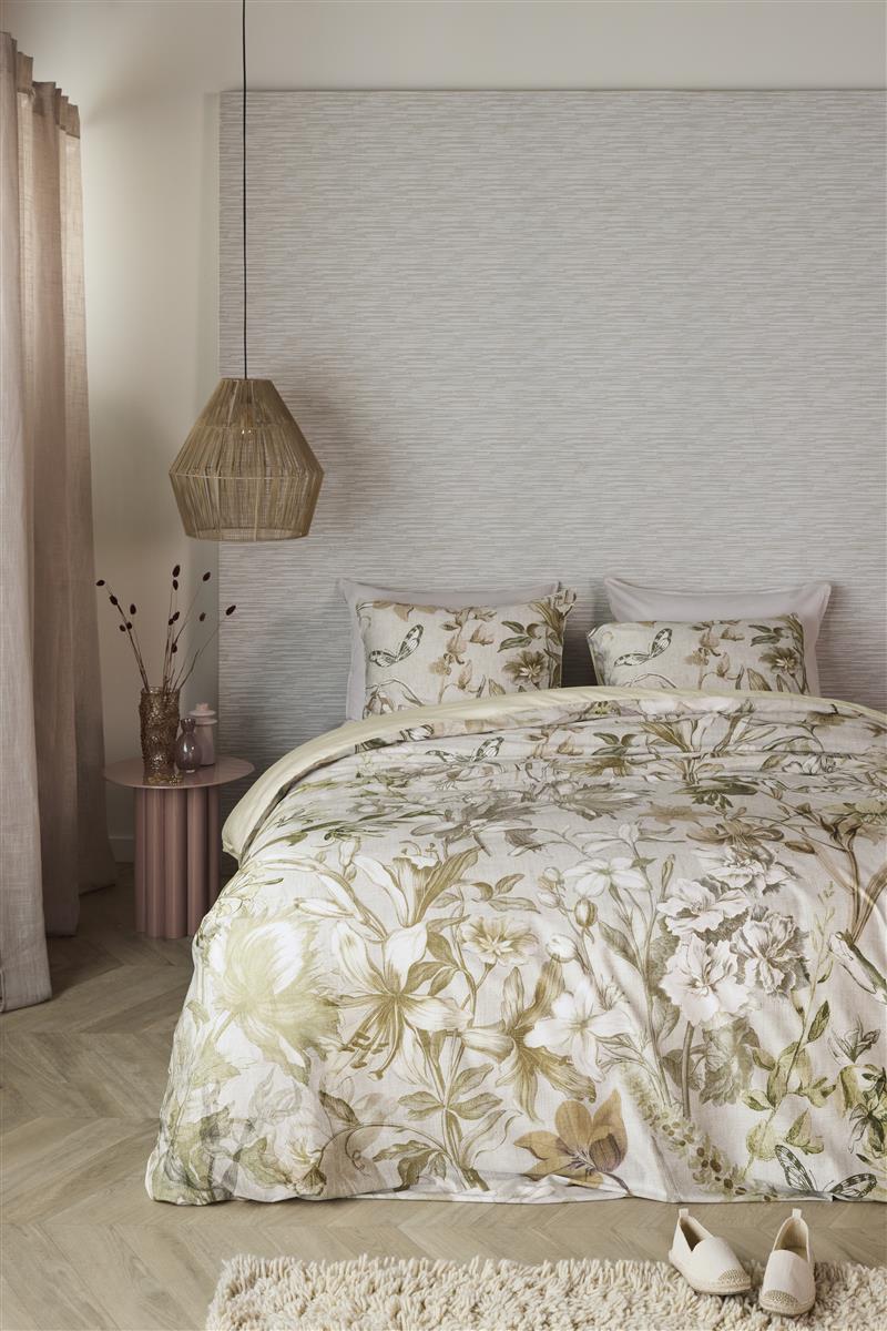 Het Bronte dekbedovertrek van Beddinghouse is geïnspireerd door eeuwenoude botanische tekeningen. Deze klassieke patronen zijn vernieuwd met een eigentijdse kleurstelling en gecombineerd met geschilderde bloemen, waaronder de lelie, wat resulteert in een harmonieus en verfijnd geheel. De hoofdkleuren variëren van nude en beige tot taupe en grijs, wat een warme en natuurlijke uitstraling geeft. De achterzijde van het dekbedovertrek is uitgevoerd in een elegante crèmekleur. Dankzij de satijnweving voelt het dekbedovertrek heerlijk zacht aan en heeft het een luxe glans, waardoor je elke avond ontspannen in slaap valt.Duurzame verpakking - Het dekbedovertrek is mooi en duurzaam verpakt in een stoffen tasje gemaakt van hetzelfde materiaal als het overtrek. Je kunt het tasje eenvoudig hergebruiken. Over Beddinghouse - Beddinghouse is een Nederlands familiebedrijf dat gespecialiseerd is in het ontwerpen van trendy en stijlvol beddengoed. Elk seizoen bieden we een uitgebreide collectie dekbedovertrekken in prachtige kleuren, gemaakt van hoogwaardige materialen.Ons Assortiment - Bij Beddinghouse vind je niet alleen dekbedovertrekken, maar ook bedspreien, moltons, hoeslakens en badtextiel. Onze producten combineren stijl met comfort en duurzaamheid.Waarom Beddinghouse? - Innovatief Design: Altijd volgens de laatste trends.Hoogwaardige Kwaliteit: Duurzame en comfortabele materialen.Groot Assortiment: Voor iedere smaak een passend product.Hoogwaardige kwaliteitHet dekbedovertrek is gemaakt van 100% katoensatijn, 220 TC. Door het gebruik van luxe garen heeft het dekbedovertrek een chique glans en voelt het heerlijk zacht aan. Het dekbedovertrek heeft over de gehele breedte aan beide zijden een dubbele instopstrook. De totale lengte van het overtrek is 260 cm. Dit is extra lang waardoor het dekbedovertrek gemakkelijk onder het matras gestopt kan worden en koude voeten worden voorkomen. Het overtrek is geschikt voor dekbedden van 200 cm, 210 cm of 220 cm. Better CottonDoor katoenproducten te kiezen van ons, steunt u onze investering in de missie van Better Cotton. Dit product is ingekocht via een mass balance systeem en bevat daardoor mogelijk geen Better Cotton. Zie bettercotton.org/learnmore.