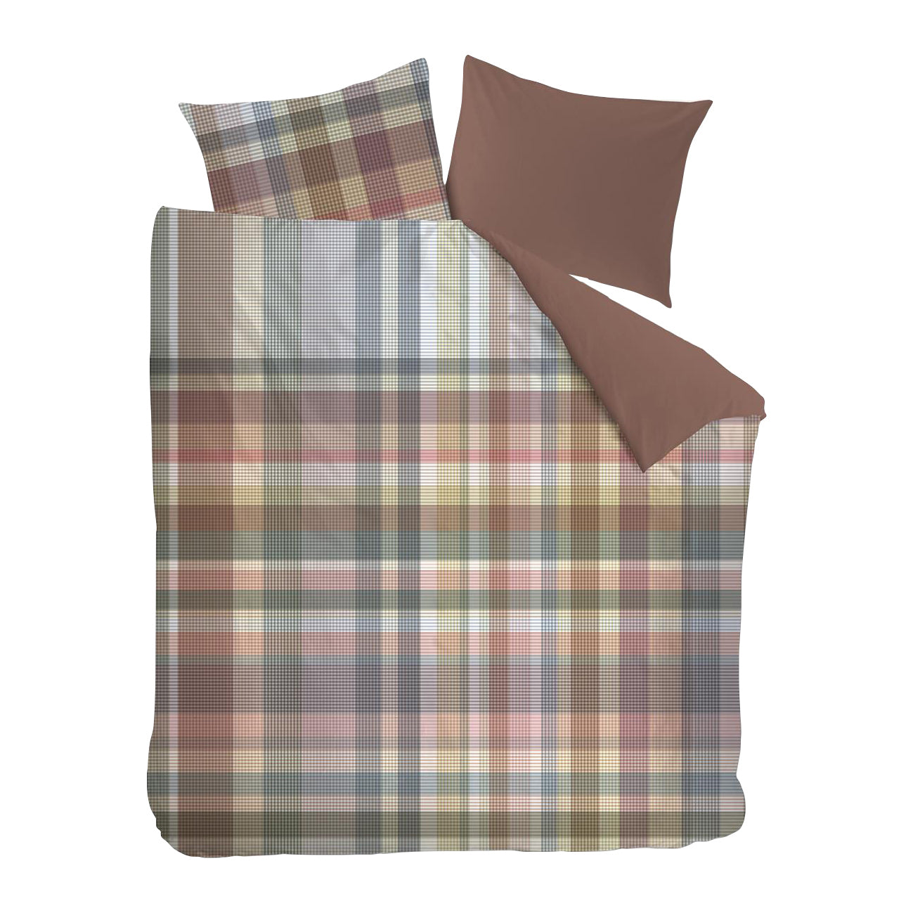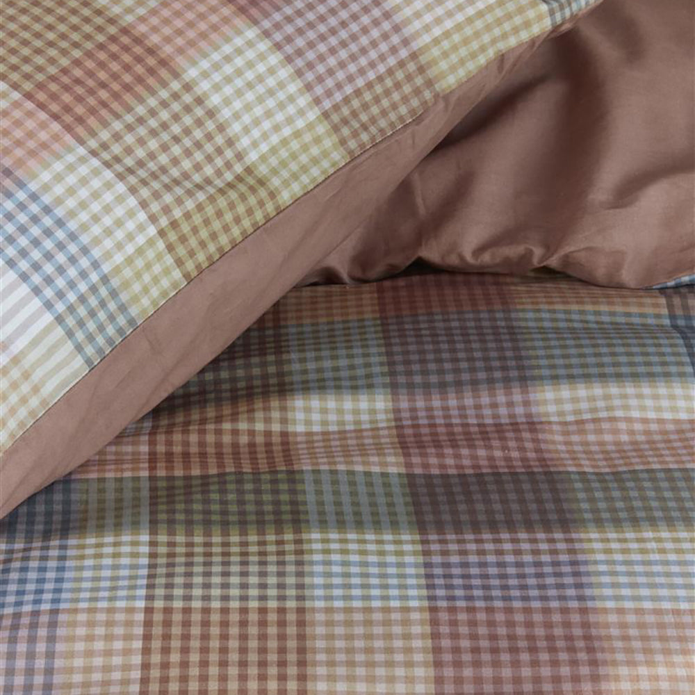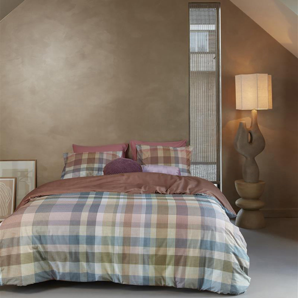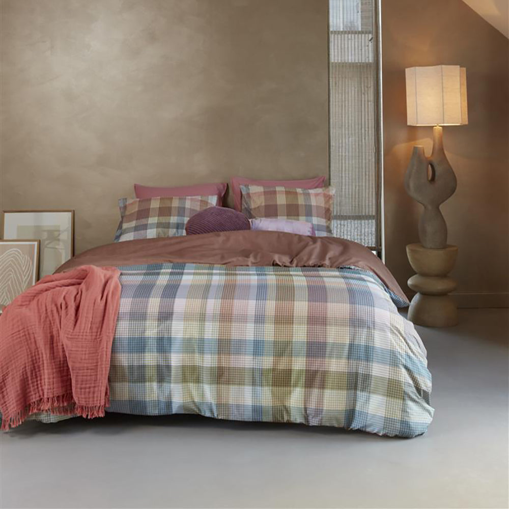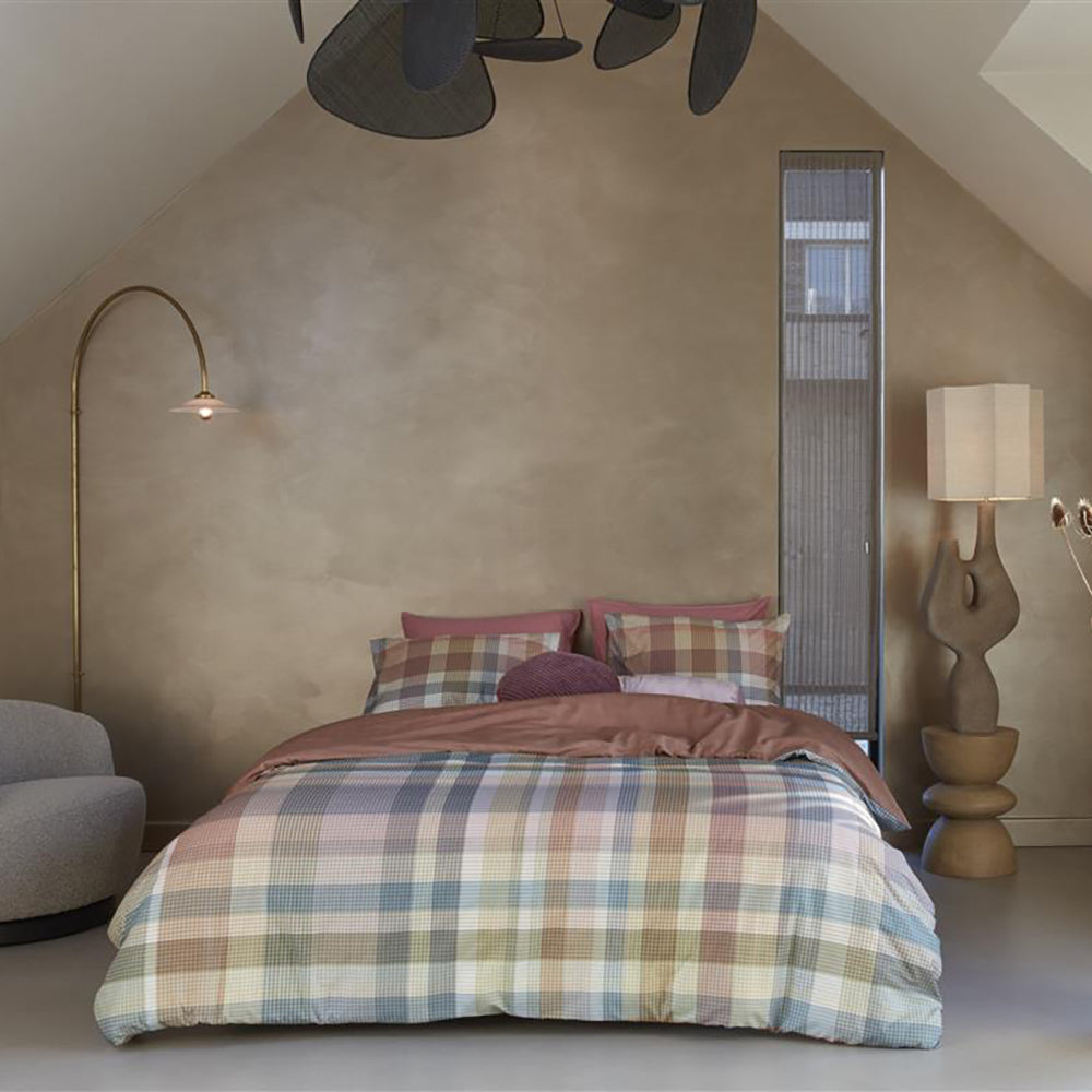 Dekbedovertrek Cameron van Beddinghouse bestaat uit een moderne ruit in frisse pastelkleuren. Het overtrek heeft een mooie gelaagdheid met meerdere smalle banen in verschillende kleuren die samen een ruitpatroon vormen. Er zijn tal van pasteltinten te zien door de vele schakeringen. De achterzijde van het overtrek heeft een effen koraalroze kleur.