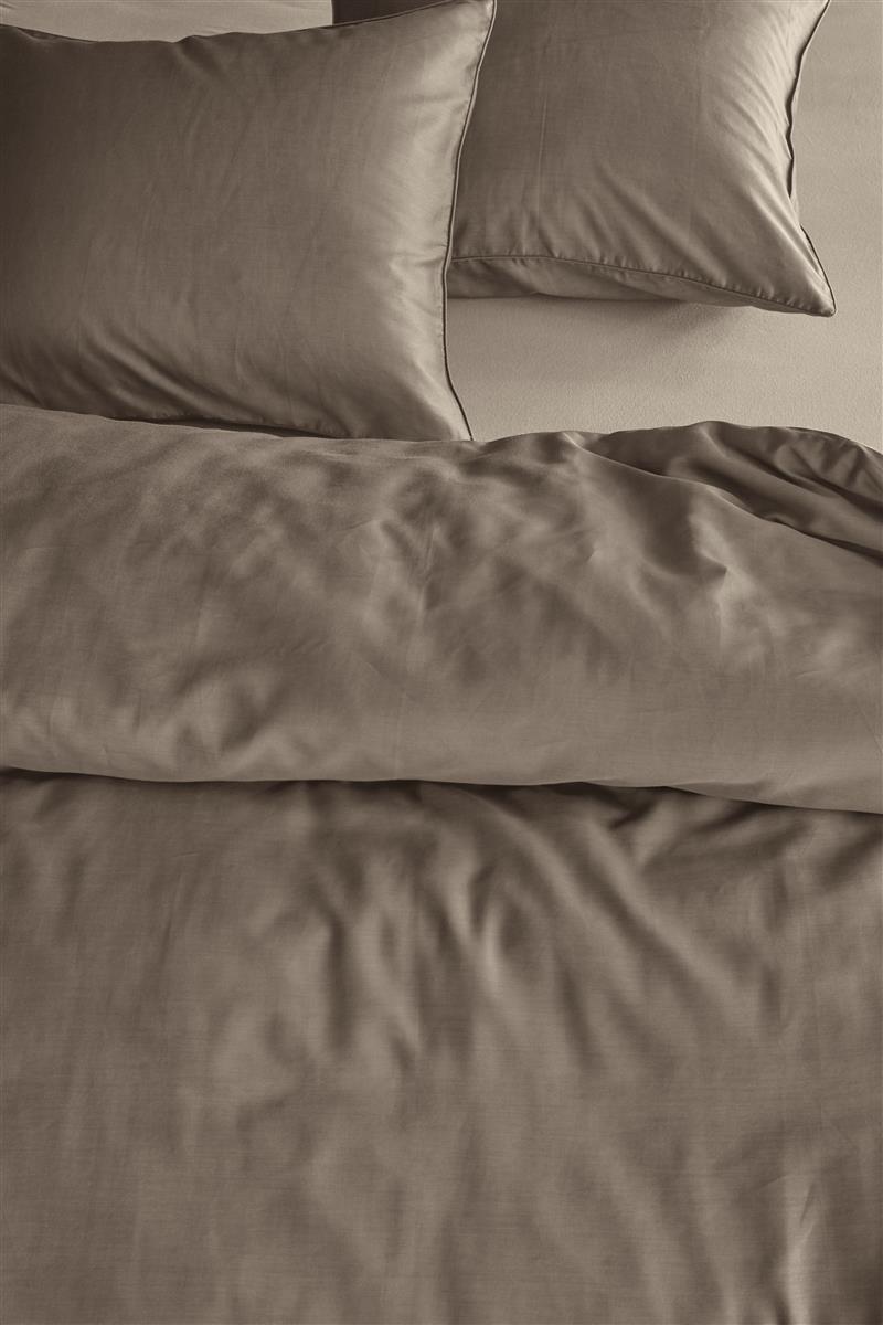Het Change dekbedovertrek van Beddinghouse in taupe is een veelzijdige keuze die moeiteloos past bij elke woonstijl. De kussenslopen zijn afgewerkt met een bies in dezelfde kleur, wat een verfijnde afwerking biedt. Het dekbedovertrek is samengesteld uit 70% lyocell en 30% katoensatijn, wat zorgt voor uitstekende vochtabsorptie en ventilatie. Lyocell, vervaardigd uit cellulosevezels van beukenbomen, is een milieuvriendelijk alternatief dat minder water, kunstmest en bestrijdingsmiddelen vereist. Het materiaal is antibacterieel en het katoensatijn geeft een mooie glans en voelt extra zacht en soepel aan.Duurzame verpakking - Het dekbedovertrek is mooi en duurzaam verpakt in een stoffen tasje gemaakt van hetzelfde materiaal als het overtrek. Je kunt het tasje eenvoudig hergebruiken.Over Beddinghouse - Beddinghouse is een Nederlands familiebedrijf dat gespecialiseerd is in het ontwerpen van trendy en stijlvol beddengoed. Elk seizoen bieden we een uitgebreide collectie dekbedovertrekken in prachtige kleuren, gemaakt van hoogwaardige materialen.Ons Assortiment - Bij Beddinghouse vind je niet alleen dekbedovertrekken, maar ook bedspreien, moltons, hoeslakens en badtextiel. Onze producten combineren stijl met comfort en duurzaamheid.Waarom Beddinghouse? - Innovatief Design: Altijd volgens de laatste trends.Hoogwaardige Kwaliteit: Duurzame en comfortabele materialen.Groot Assortiment: Voor iedere smaak een passend product.Hoogwaardige kwaliteitHet dekbedovertrek is gemaakt van 70% lyocell en 30% katoensatijn. Lyocell wordt gemaakt van de cellulosevezels van beukenbomen, die kunnen worden gekweekt op grond die niet geschikt is voor landbouw. De beuk heeft minder water, bestrijdingsmiddelen en kunstmest nodig om te groeien en is daarom een duurzamere optie. Daarnaast heeft lyocell antibacteriële eigenschappen, een uitstekend vochtabsorberend vermogen en biedt het optimale ventilatie. De stof zorgt voor een zeer goede temperatuurregeling, waardoor dit dekbedovertrek in de zomer koel is en in de winter warm.Het overtrek heeft over de gehele breedte aan beide zijden een dubbele instopstrook. De totale lengte van het dekbedovertrek is 260 cm. Dit is extra lang waardoor het dekbedovertrek gemakkelijk onder het matras gestopt kan worden en koude voeten worden voorkomen. Het overtrek is geschikt voor dekbedden van 200 cm, 210 cm of 220 cm.