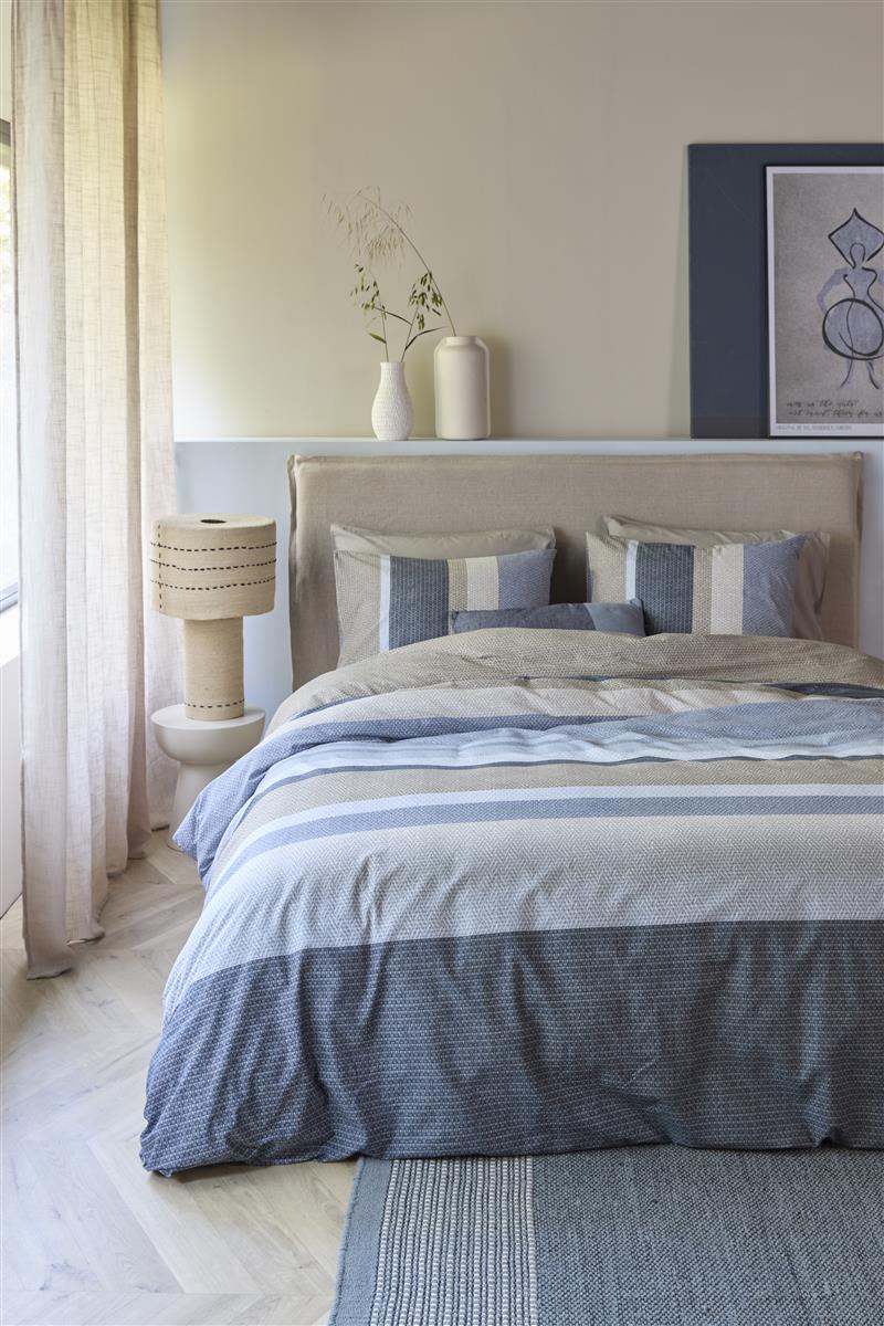 Het Beddinghouse Jorren dekbedovertrek combineert stoere weefstructuren met subtiele tinten voor een opvallend banendessin. De afwisseling van lijnen in blauw, grijs en beige geeft het geheel een harmonieuze uitstraling, perfect passend in een moderne of industriële slaapkamer. Vervaardigd uit 100% katoen, biedt het dekbedovertrek ademend comfort voor een rustgevende nachtrust. Dit stijlvolle ontwerp is tevens verkrijgbaar in verschillende kleurstellingen.Duurzame verpakking - Het dekbedovertrek is mooi en duurzaam verpakt in een stoffen tasje gemaakt van hetzelfde materiaal als het overtrek. Je kunt het tasje eenvoudig hergebruiken.Over Beddinghouse - Beddinghouse is een Nederlands familiebedrijf dat gespecialiseerd is in het ontwerpen van trendy en stijlvol beddengoed. Elk seizoen bieden we een uitgebreide collectie dekbedovertrekken in prachtige kleuren, gemaakt van hoogwaardige materialen.Ons Assortiment - Bij Beddinghouse vind je niet alleen dekbedovertrekken, maar ook bedspreien, moltons, hoeslakens en badtextiel. Onze producten combineren stijl met comfort en duurzaamheid.Waarom Beddinghouse? - Innovatief Design: Altijd volgens de laatste trends.Hoogwaardige Kwaliteit: Duurzame en comfortabele materialen.Groot Assortiment: Voor iedere smaak een passend product.Hoogwaardige kwaliteitHet dekbedovertrek is gemaakt van 100% katoen, 144 TC. Het overtrek heeft over de gehele breedte aan beide zijden een dubbele instopstrook. De totale lengte van het dekbedovertrek is 250 cm. Dit is extra lang waardoor het dekbedovertrek gemakkelijk onder het matras gestopt kan worden en koude voeten worden voorkomen. Het overtrek is geschikt voor dekbedden van 200 cm, 210 cm of 220 cm. Better CottonDoor katoenproducten te kiezen van ons, steunt u onze investering in de missie van Better Cotton. Dit product is ingekocht via een mass balance systeem en bevat daardoor mogelijk geen Better Cotton. Zie bettercotton.org/learnmore.