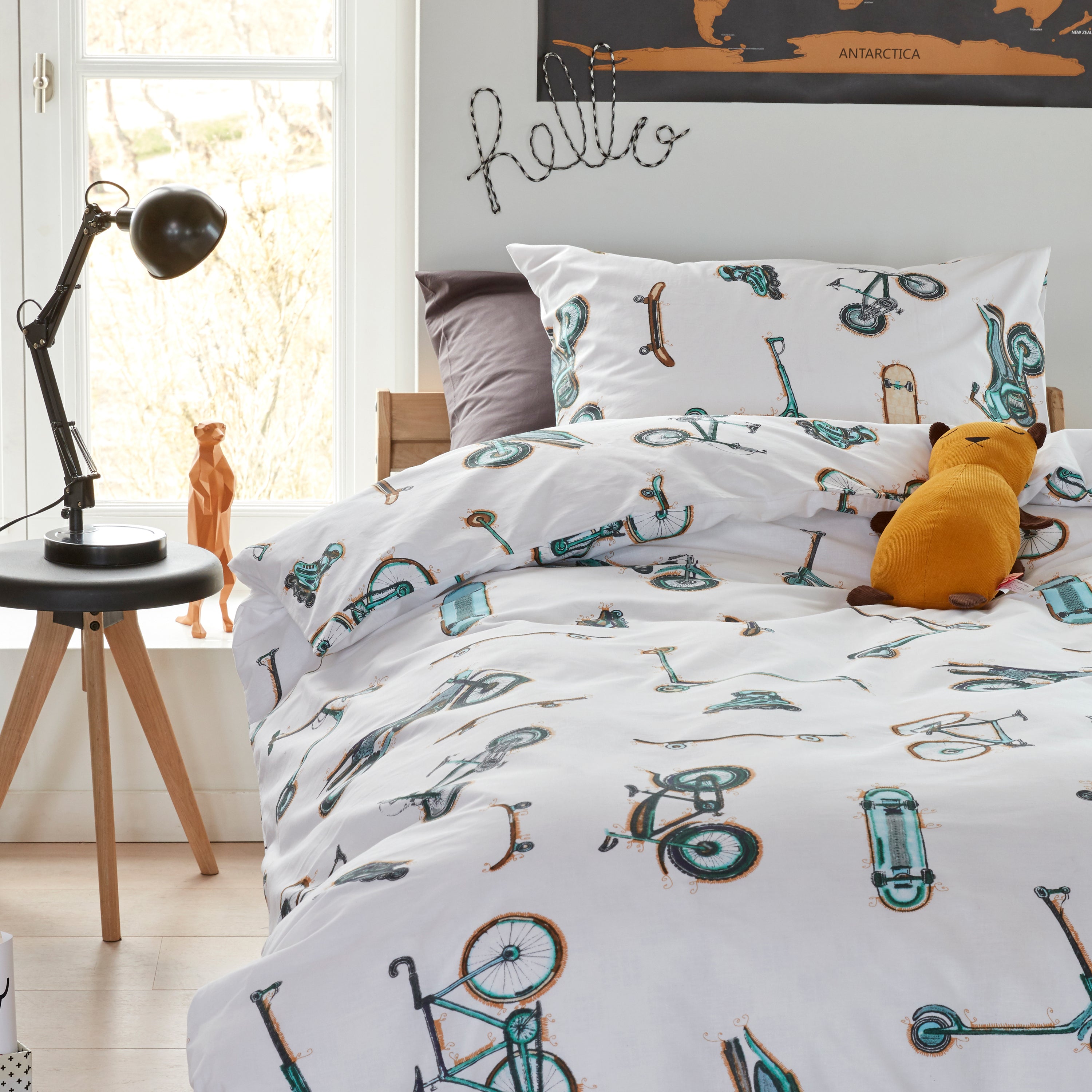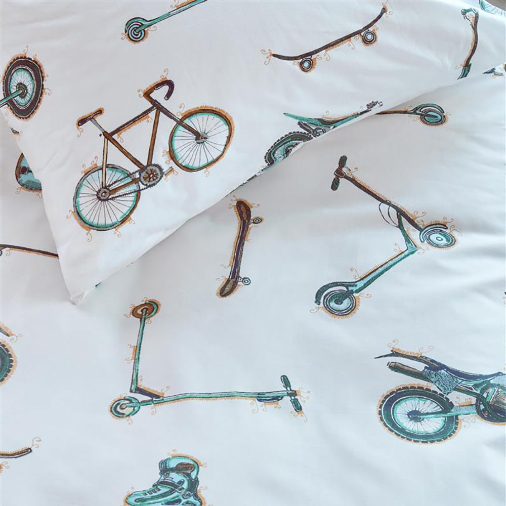 Waarom dekbedovertrek Wheelers? Door het gebruik van hoogwaardig katoen komt de prachtige print van het Wheelers dekbedovertrek nog beter tot zijn recht. Afhankelijk van de maat wordt het overtrek geleverd met een of twee bijpassende kussenslopen. Handig: door de doorlopende instopstrook maak je het bed eenvoudig op en blijft je dekbed goed op zijn plaats!