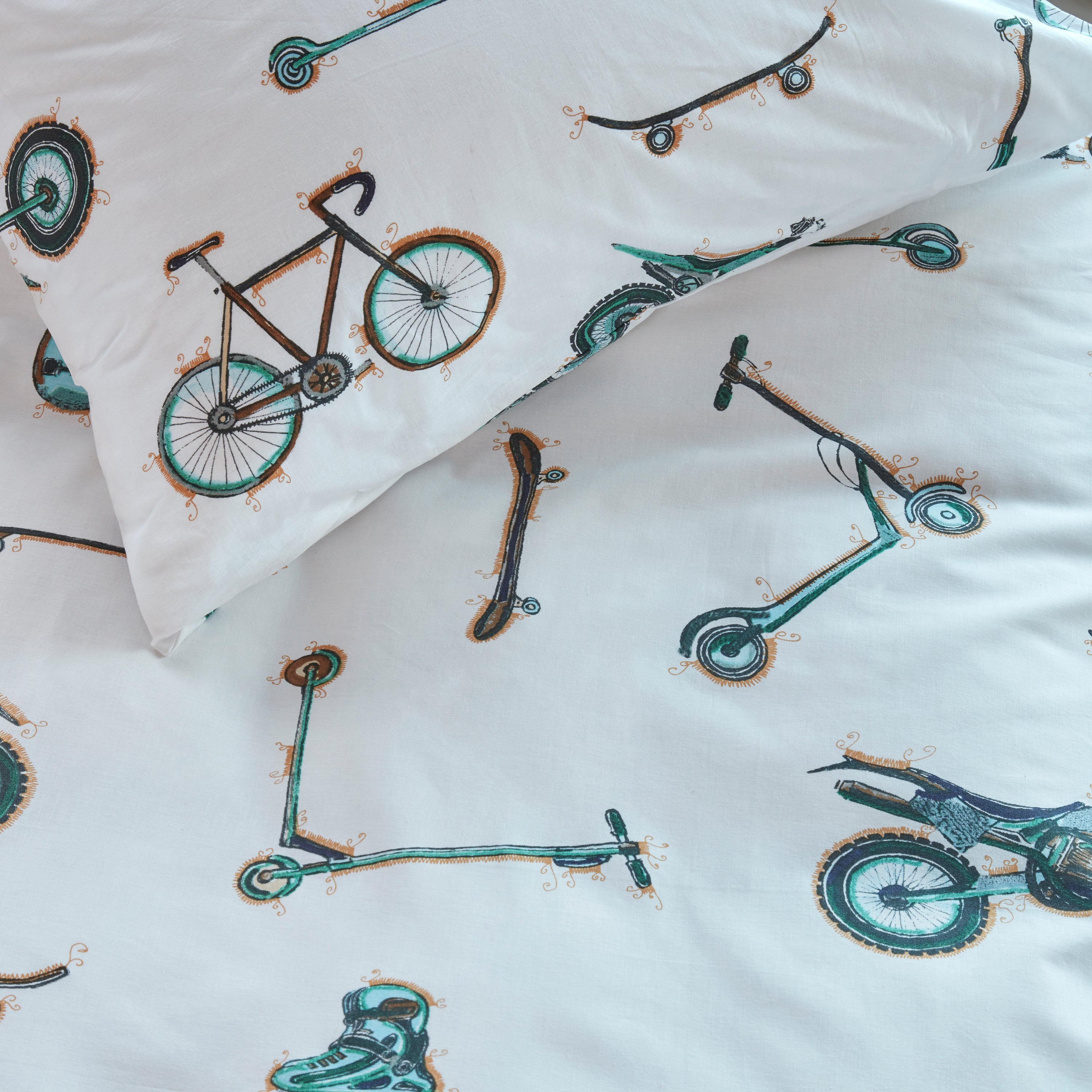 - Stoere print met motors, skateboards en race- en bmx-fietsen