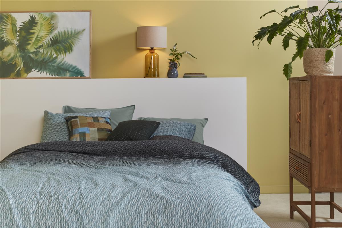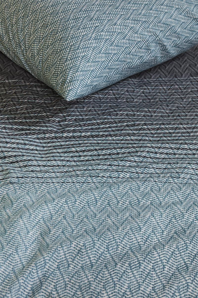 Dekbedovertrek Noa bestaat uit een all-over visgraatmotief met een subtiel kleurverloop. De bovenkant van het overtrek heeft een donkerekleur en loopt subtiel over naar een zachtere kleur.