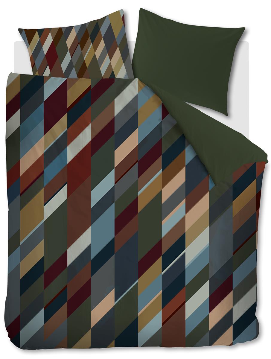 Breng een vleugje hedendaagse kunst naar je slaapkamer met dekbedovertrek Roan. Geïnspireerd door moderne grafische patronen en klassieke diagonale strepen, is dit overtrek ideaal voor een stijlvolle, moderne slaapkamer. De combinatie van een glanzende katoensatijnen afwerking en een effen groene achterzijde geeft het geheel een verfijnde uitstraling.