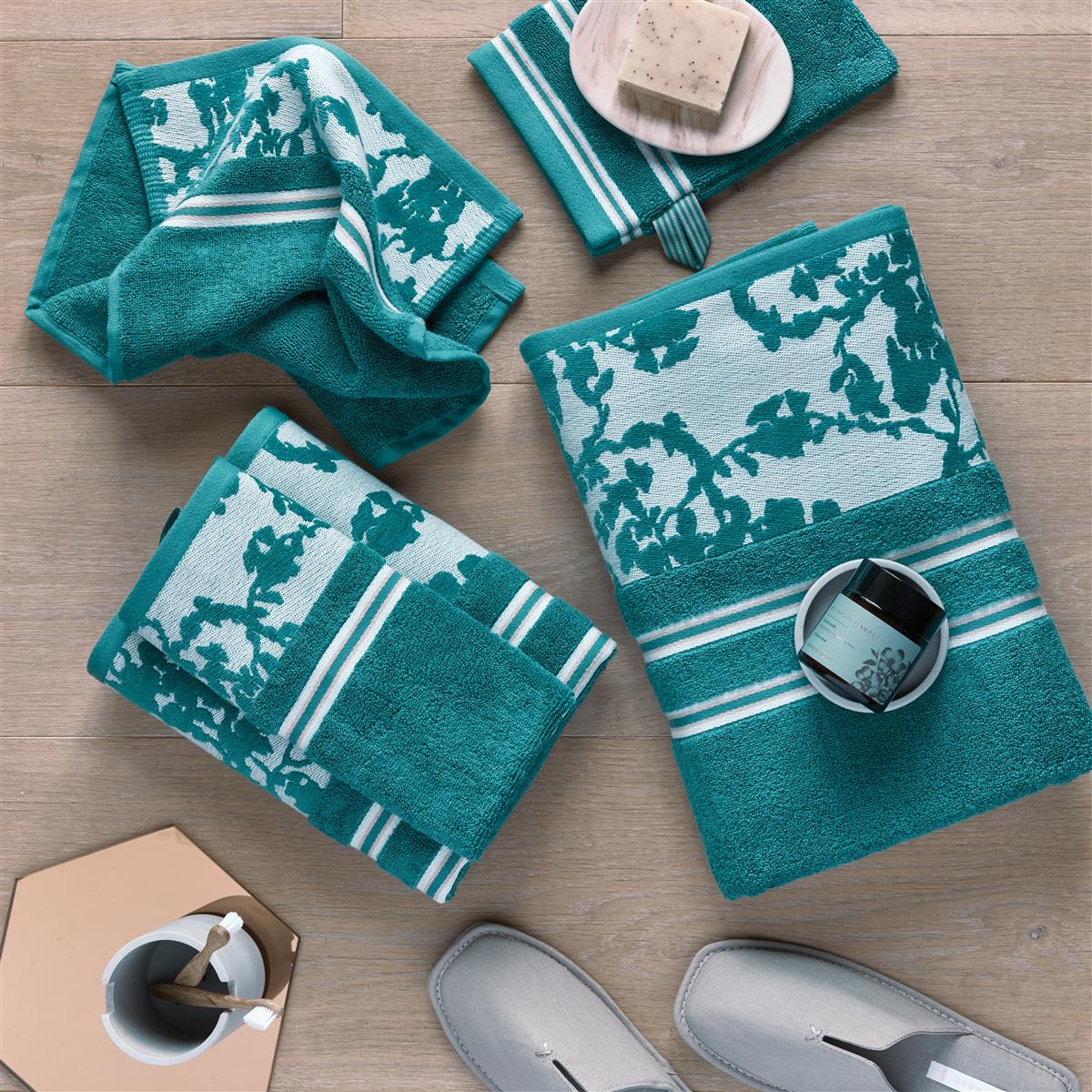 - De douchehanddoeken zijn gemaakt van 100% hoogwaardig katoen (550 g/m2) met een hoog laag terry rand met een zacht groen accent en een gestreepte zacht roze en groen geweven lus