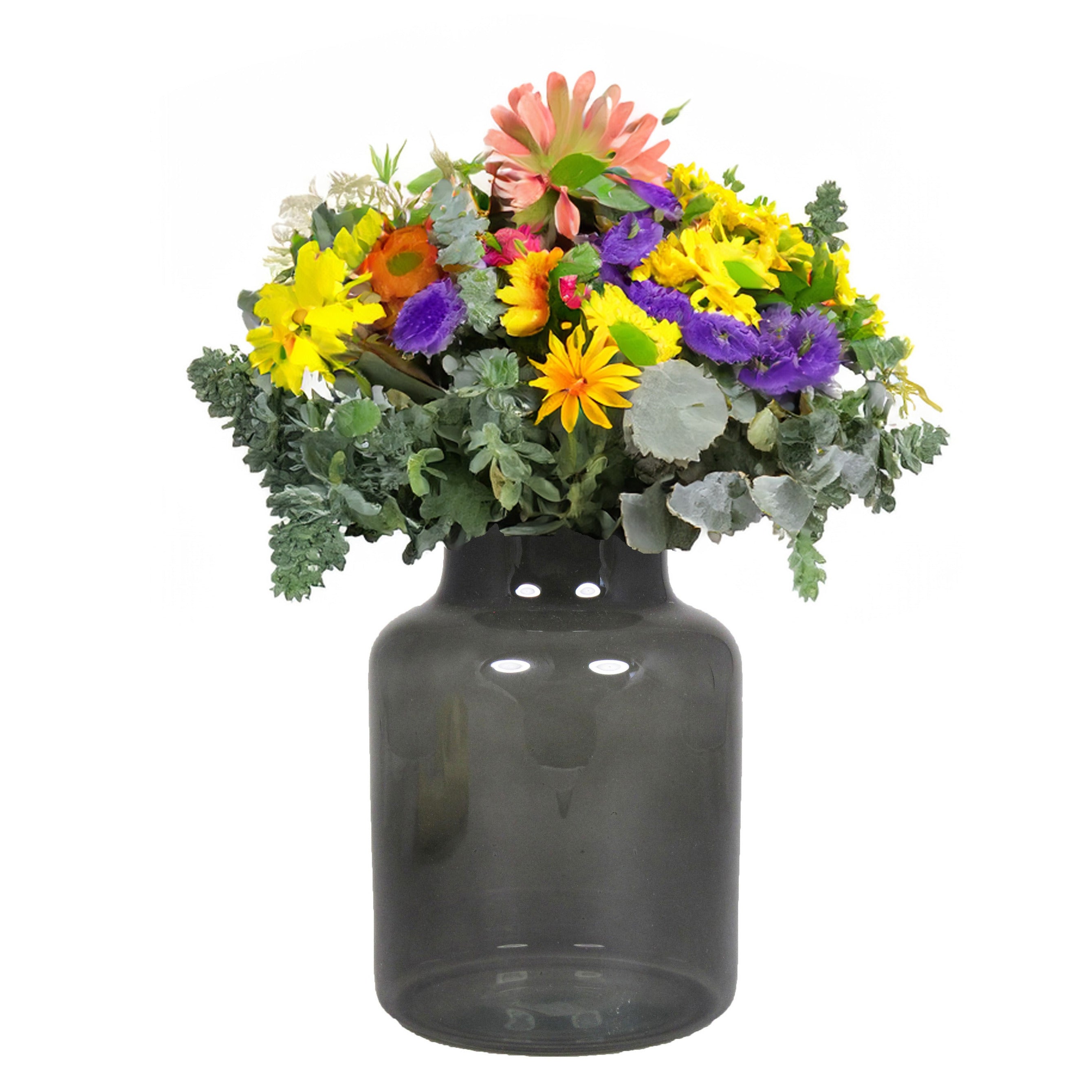 Bela Arte Bloemenvaas Milan - smoke grijs glas - D15xH20 cm - melkbus