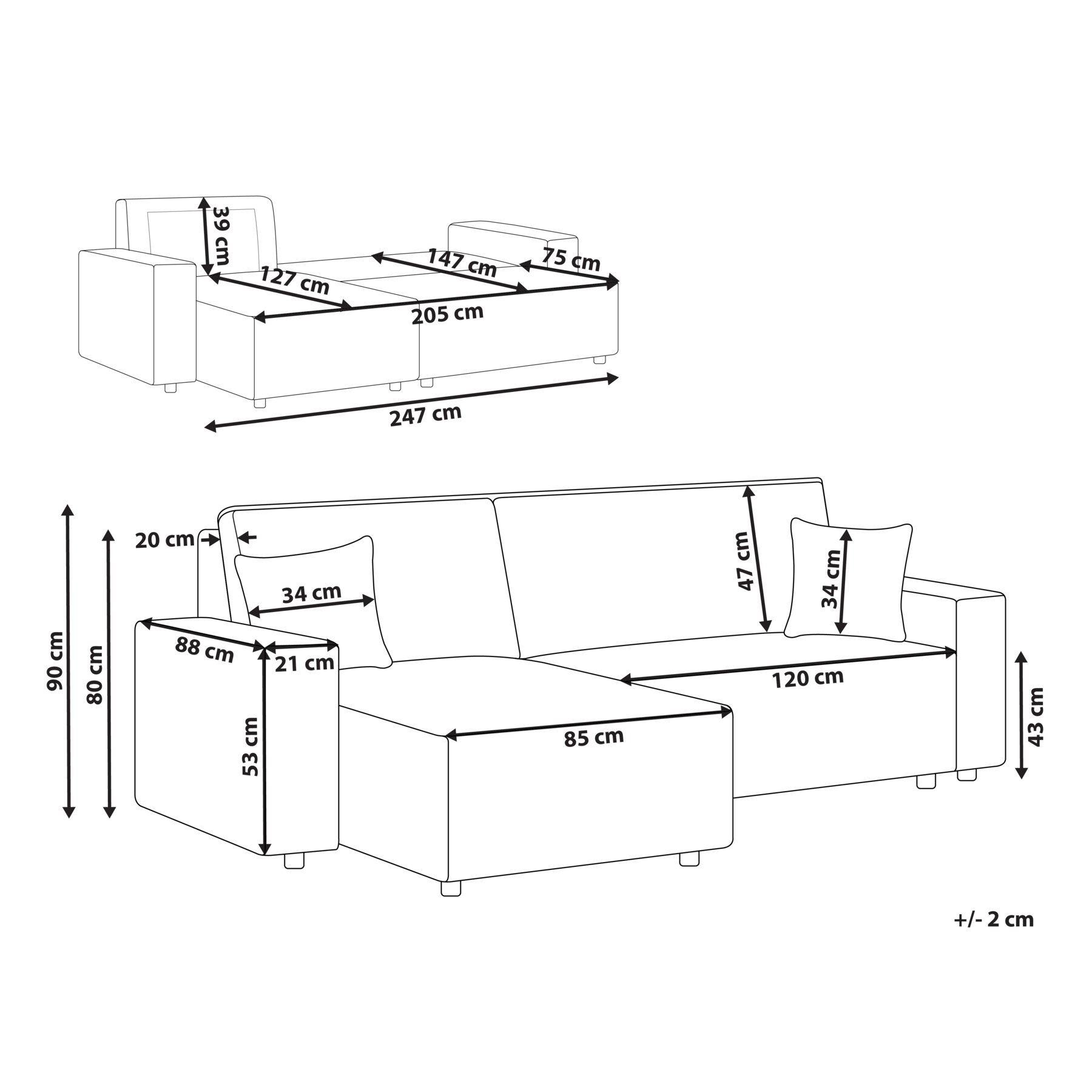 Beliani - ABACKA - Slaapbank - Beige - Rechtszijdig - Corduroy