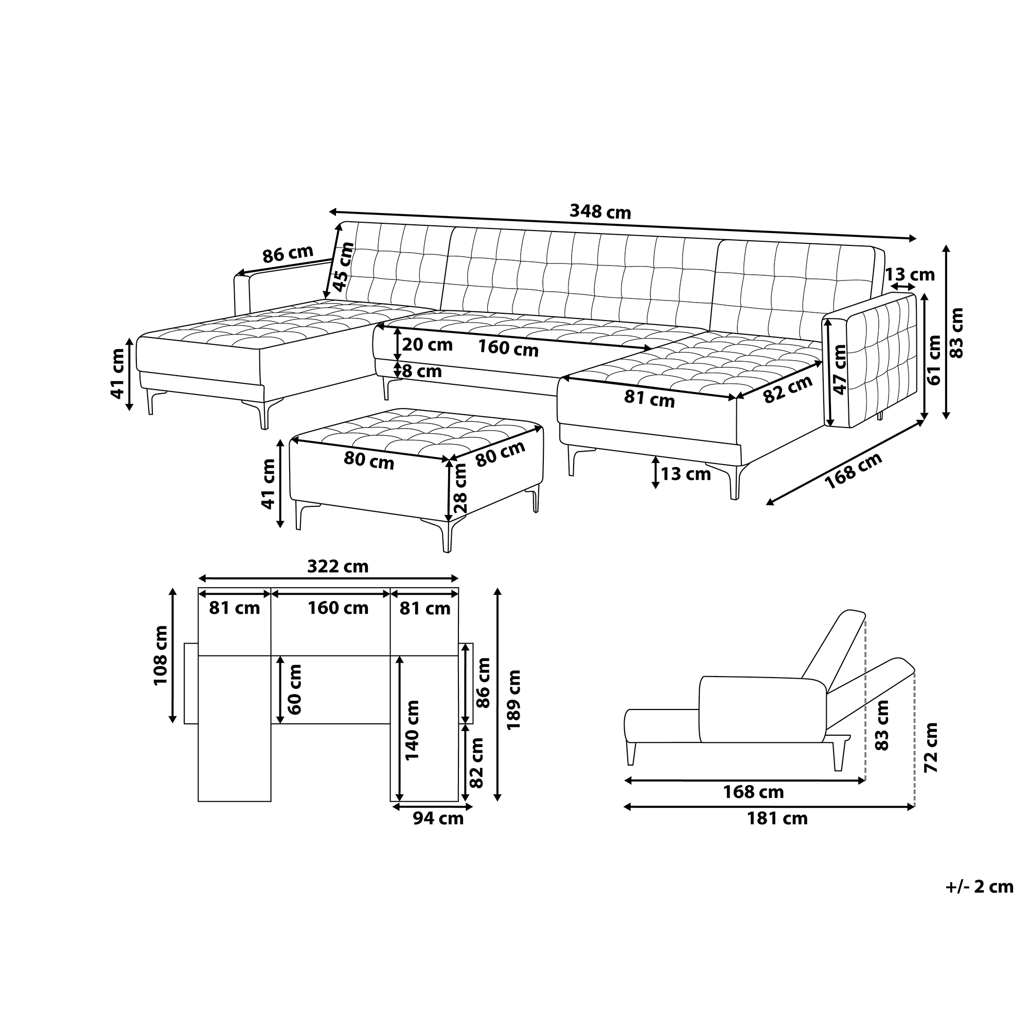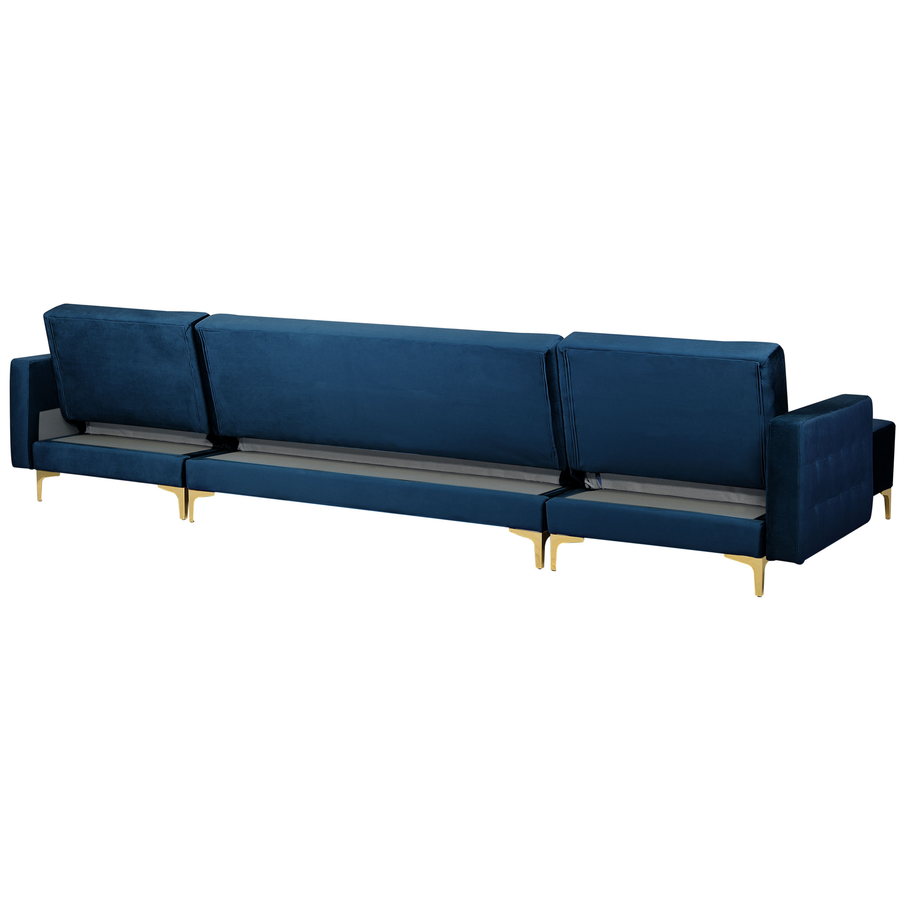 Beliani-ABERDEEN-Bank U-vormig met hocker voor 5-Marineblauw- Fluweel
