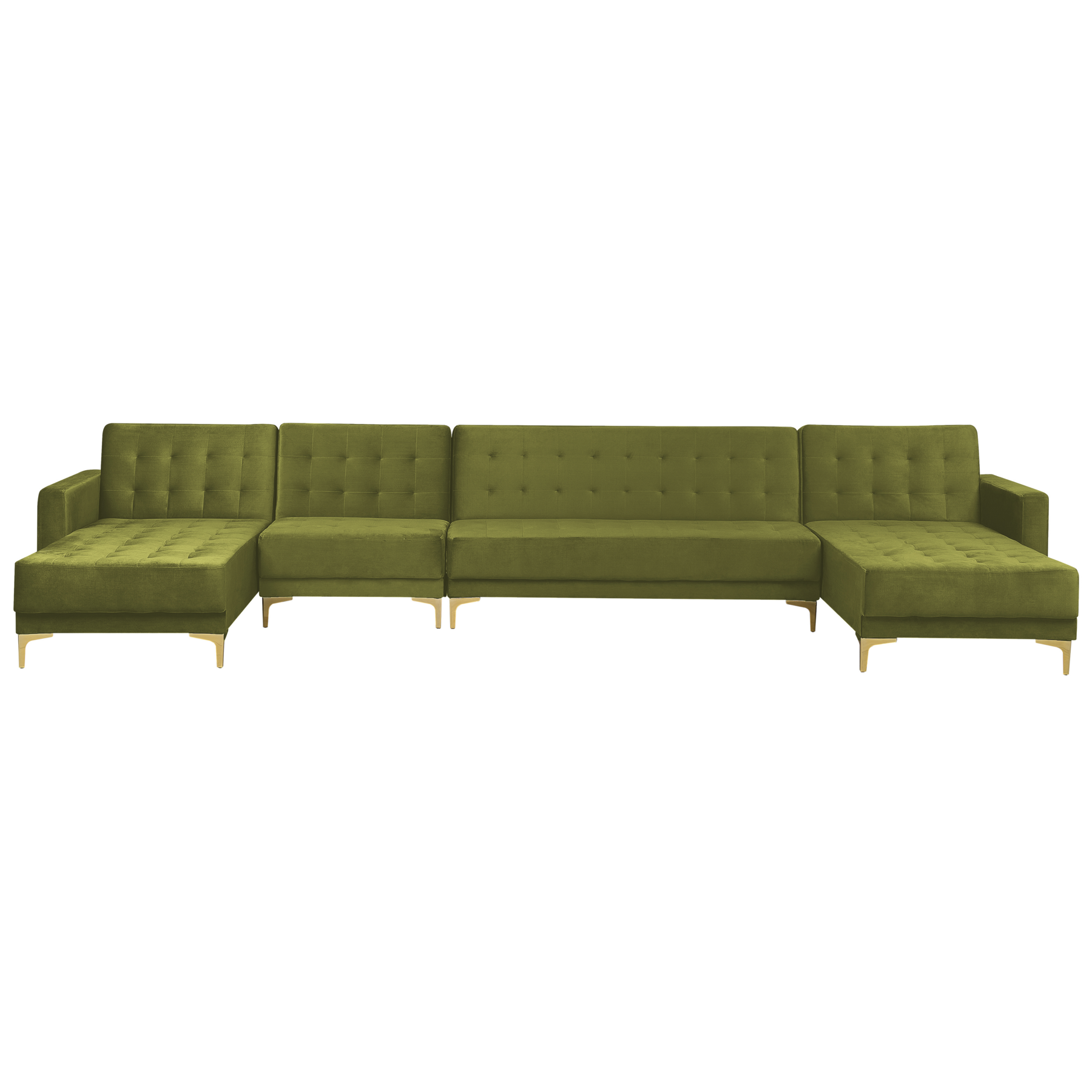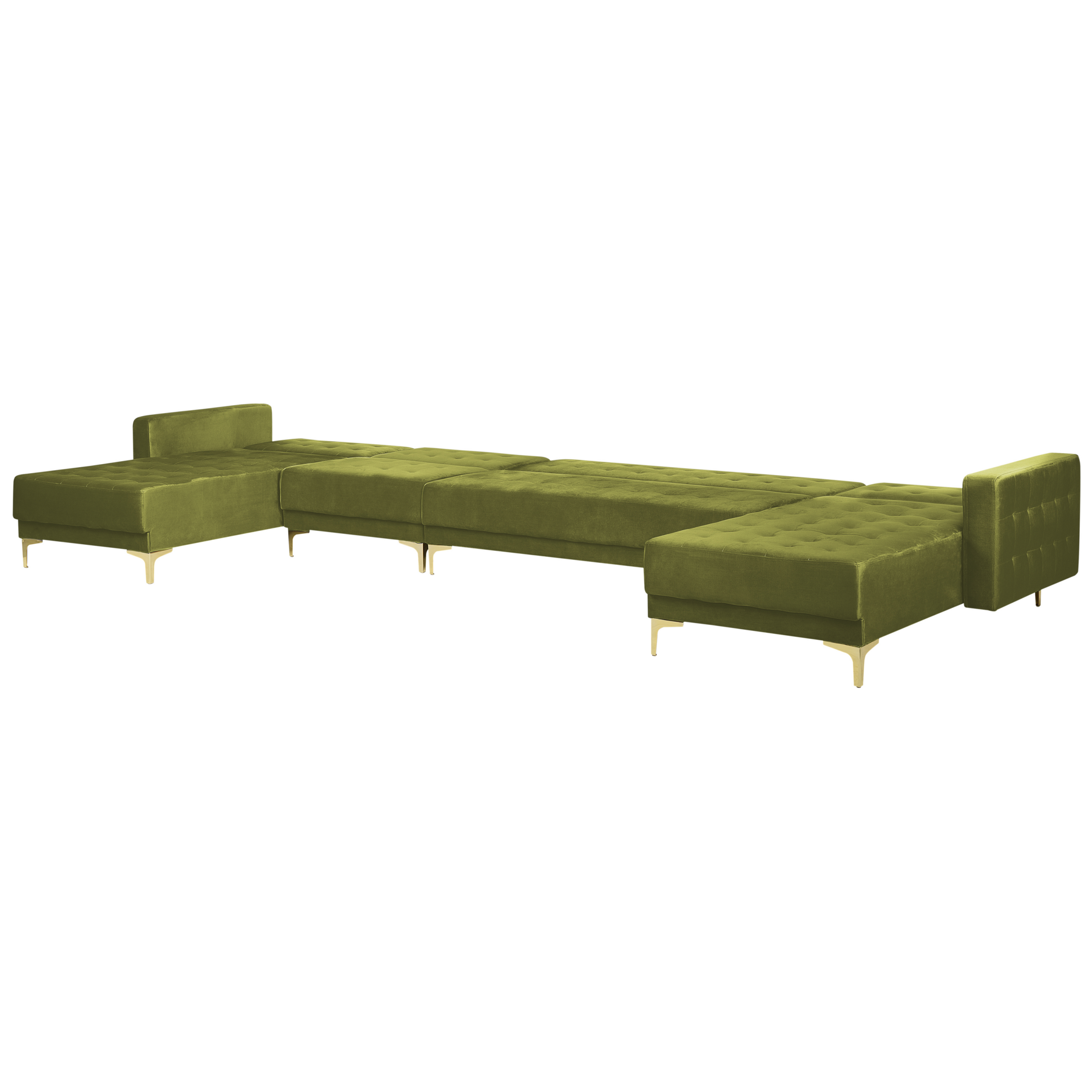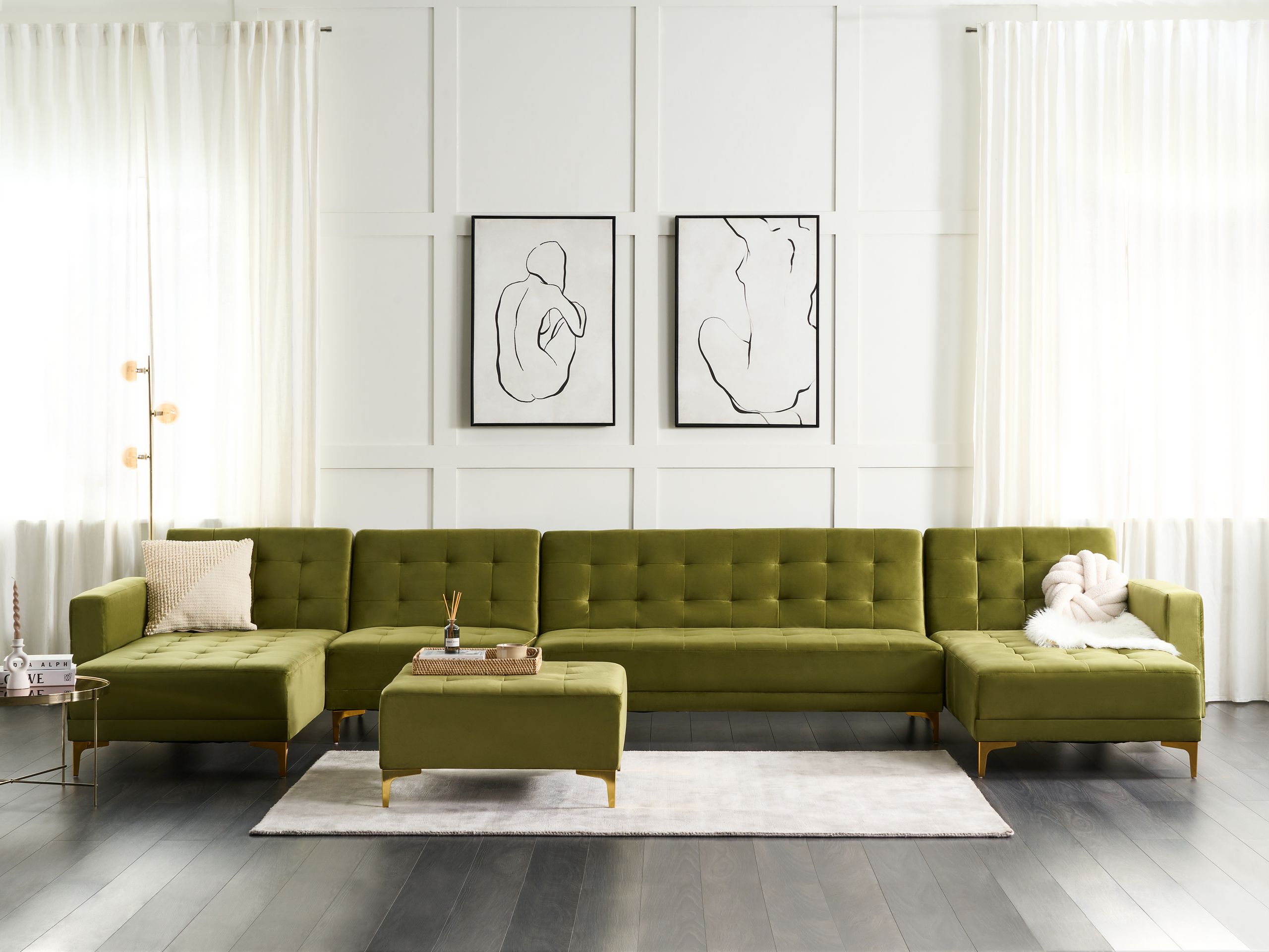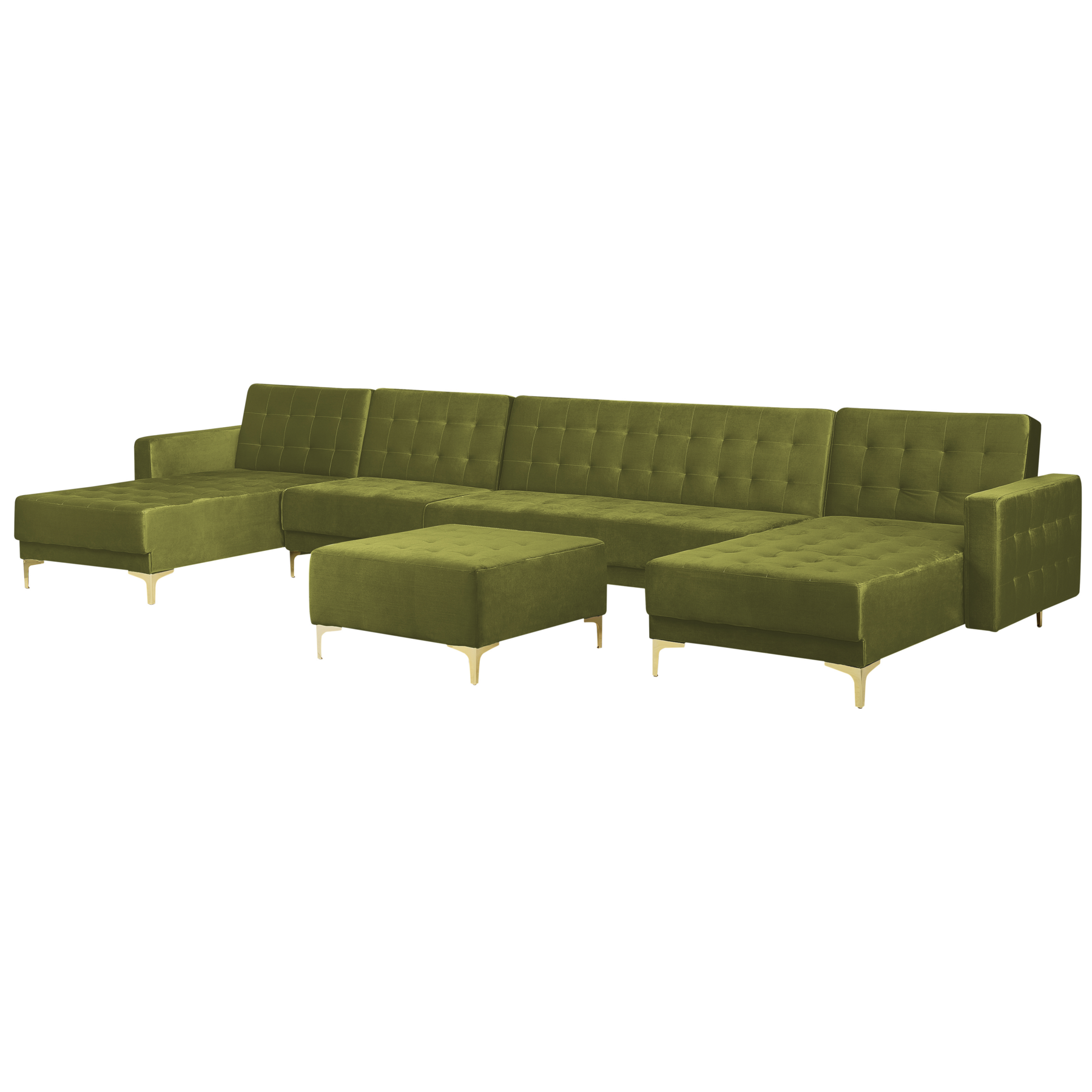 Beliani-ABERDEEN-Bank U-vormig met ottomaan-Olijfgroen-6-zits-Fluweel