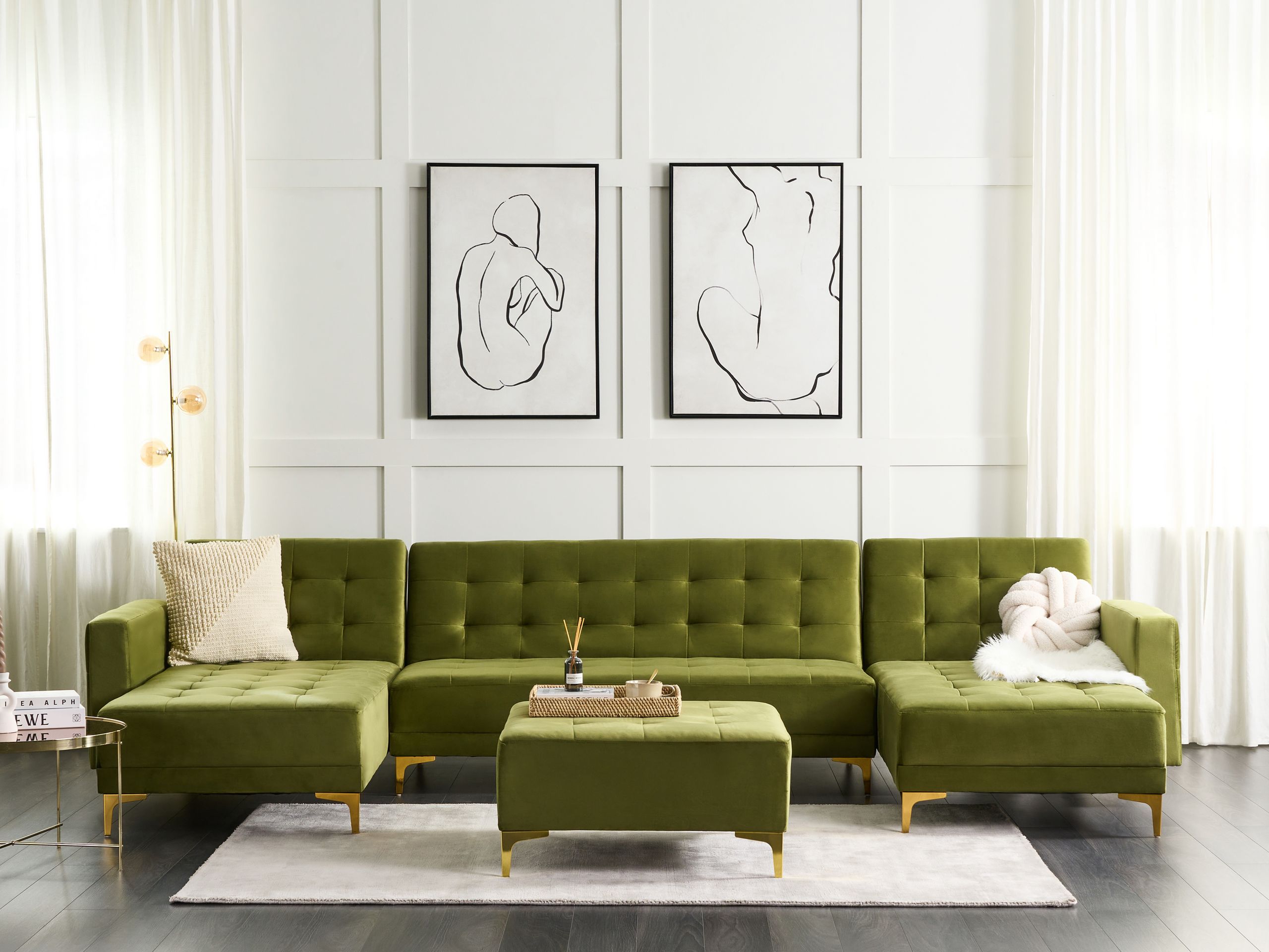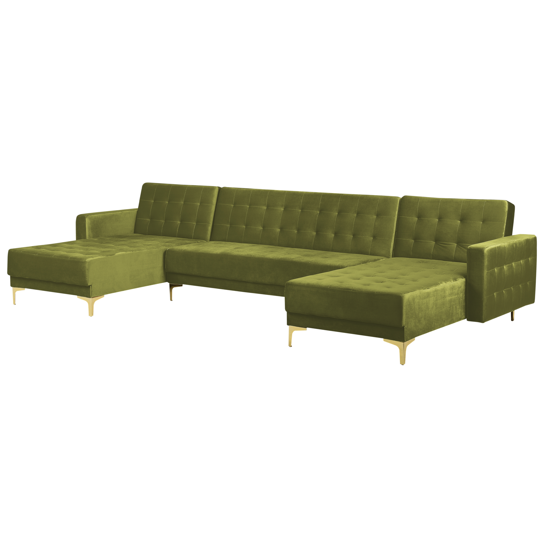 Beliani - ABERDEEN - Bank U-vormig - Olijfgroen - 5 persoons - Fluweel