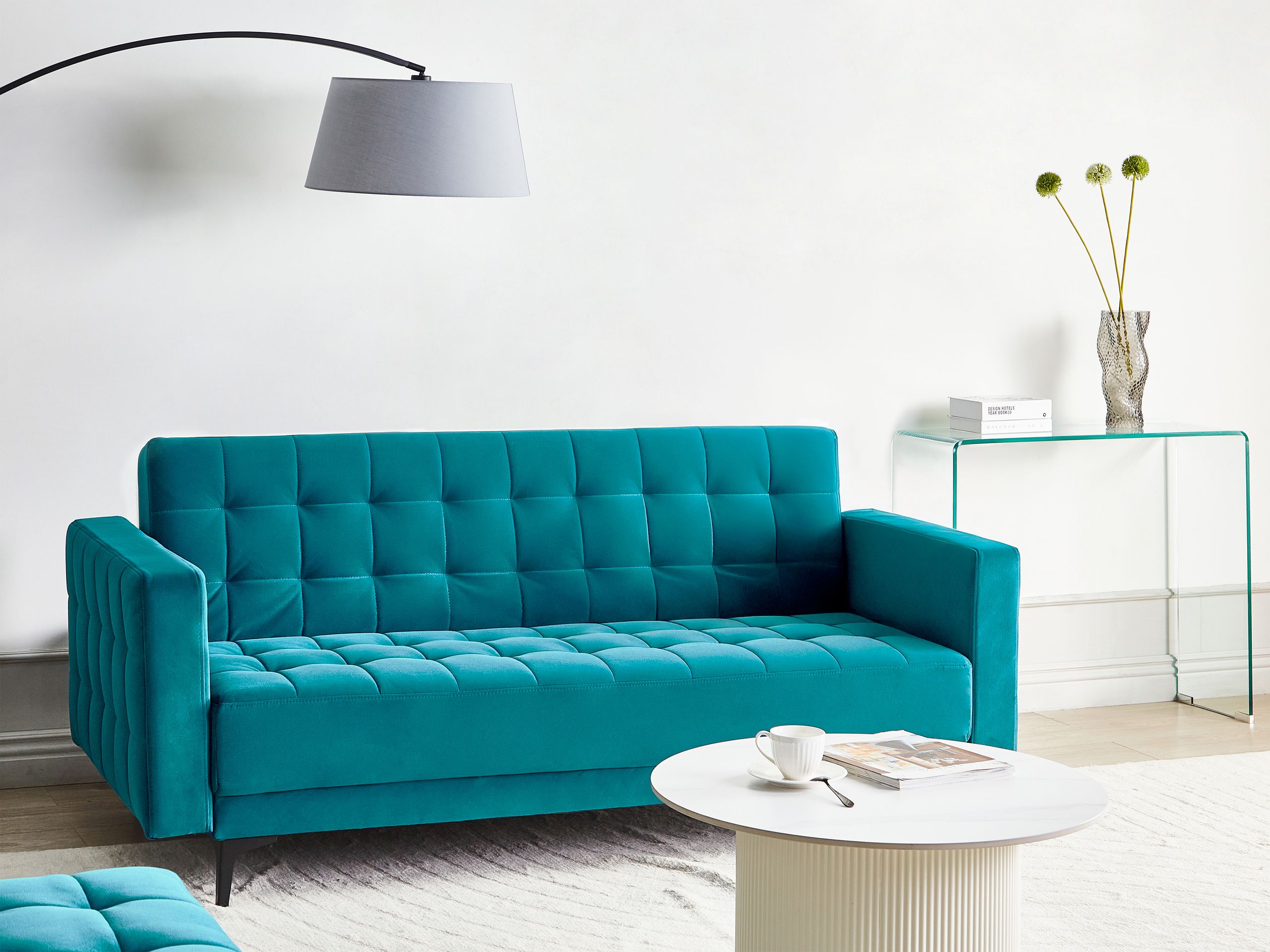 Beliani - ABERDEEN - Driezitsbank - Zeeblauw - Fluweel