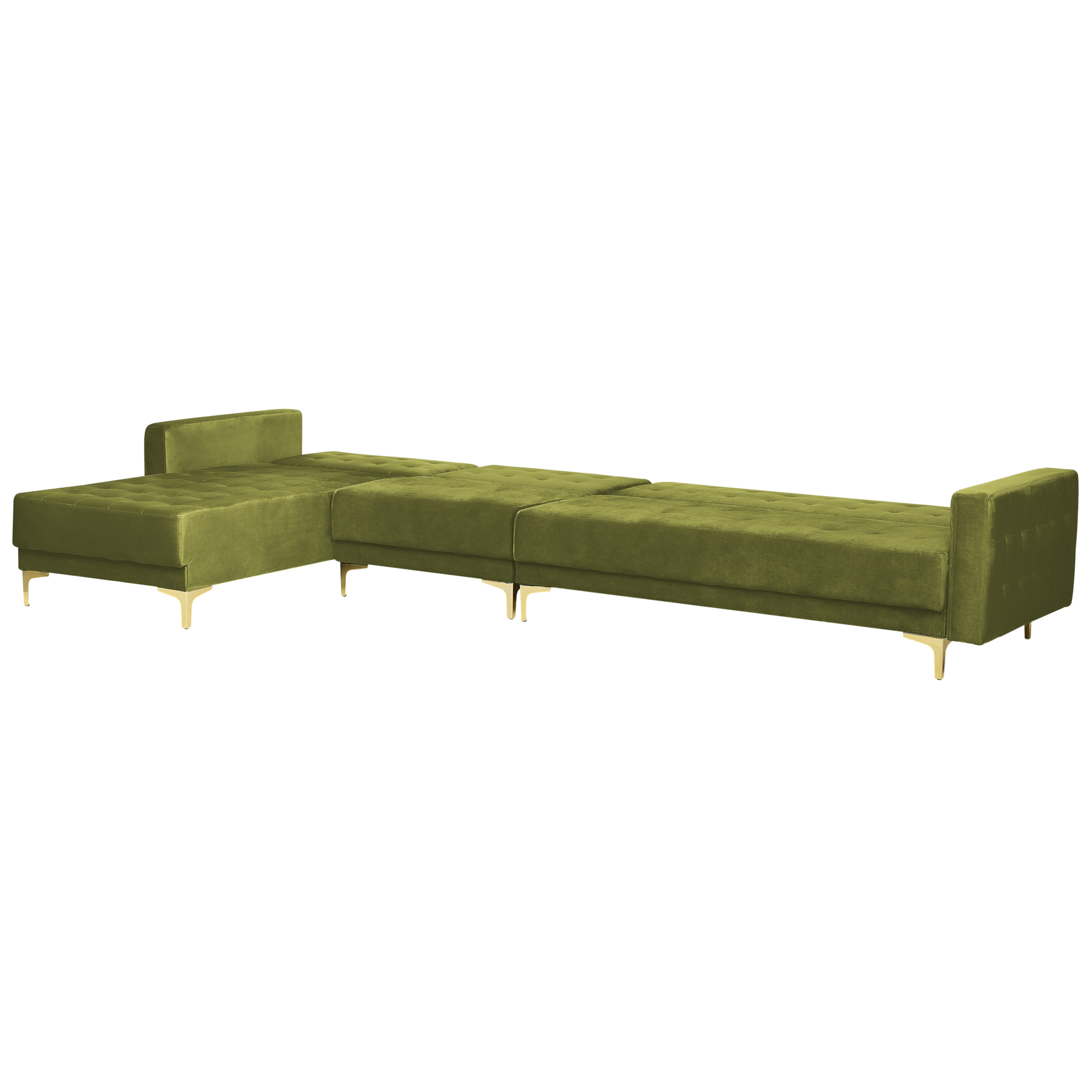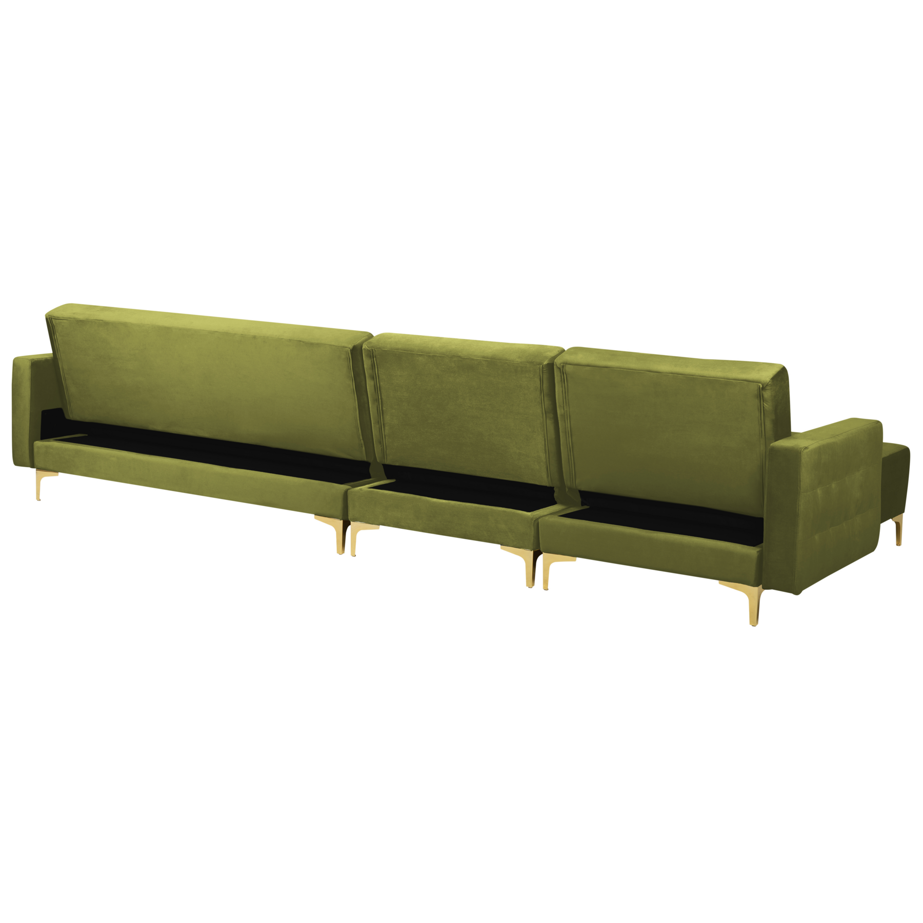 Beliani-ABERDEEN-Hoekbank modulair ottomaan-Olijfgroen-Rechts-Fluweel
