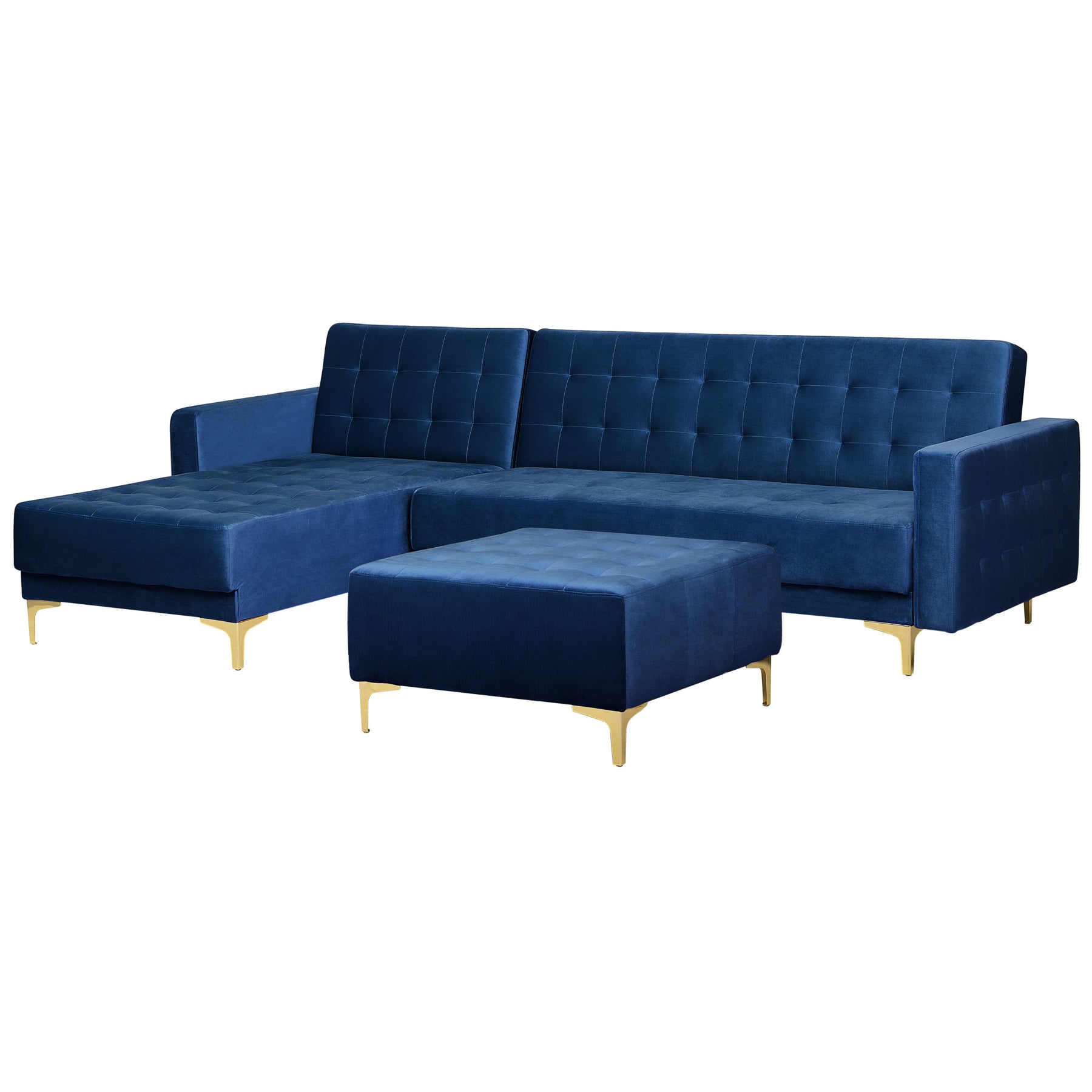 Beliani-ABERDEEN-Hoekslaapbank met ottomaan-Marineblauw-Rechts-Fluweel
