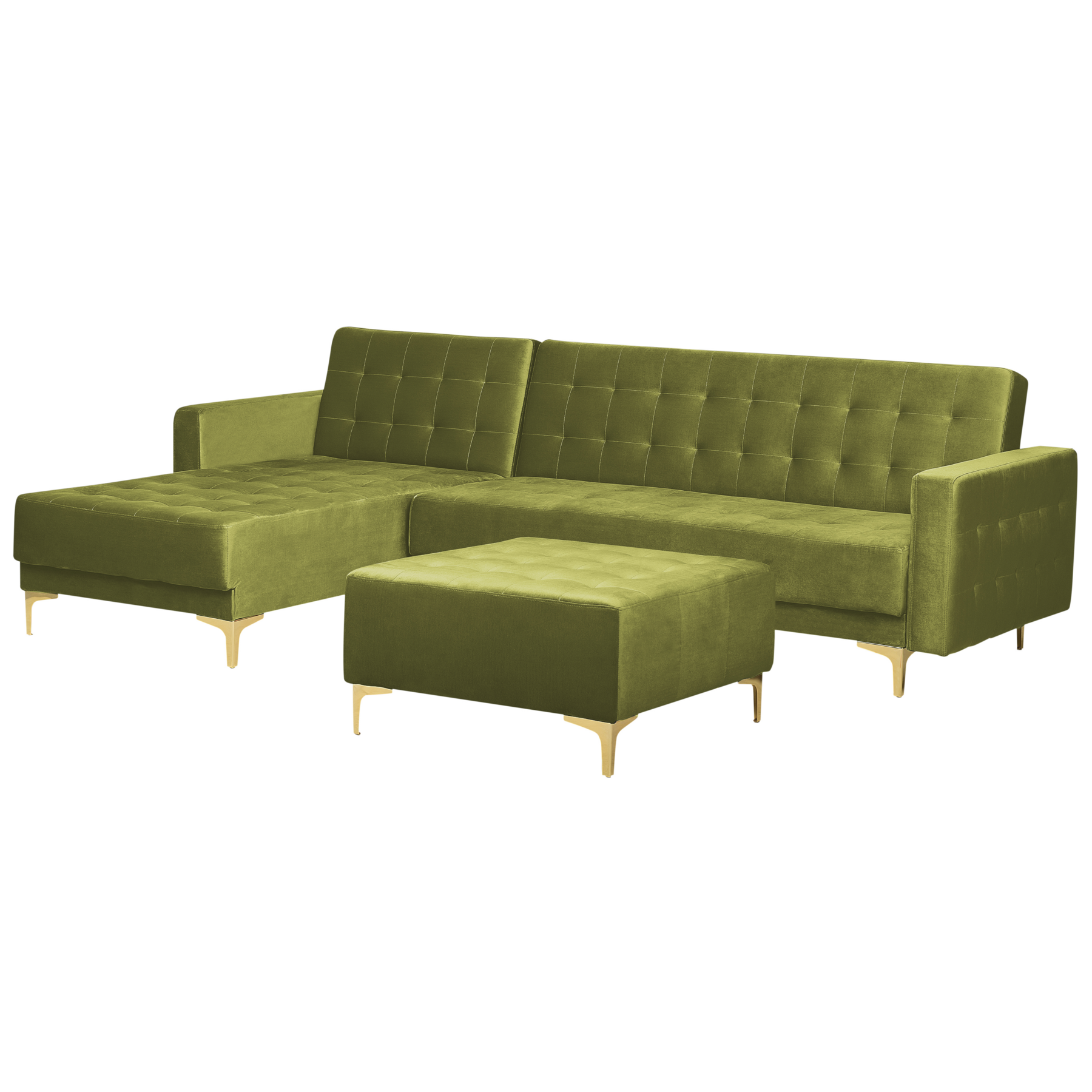 Beliani-ABERDEEN-Hoekslaapbank ottomaan-Olijfgroen-Rechts-Fluweel