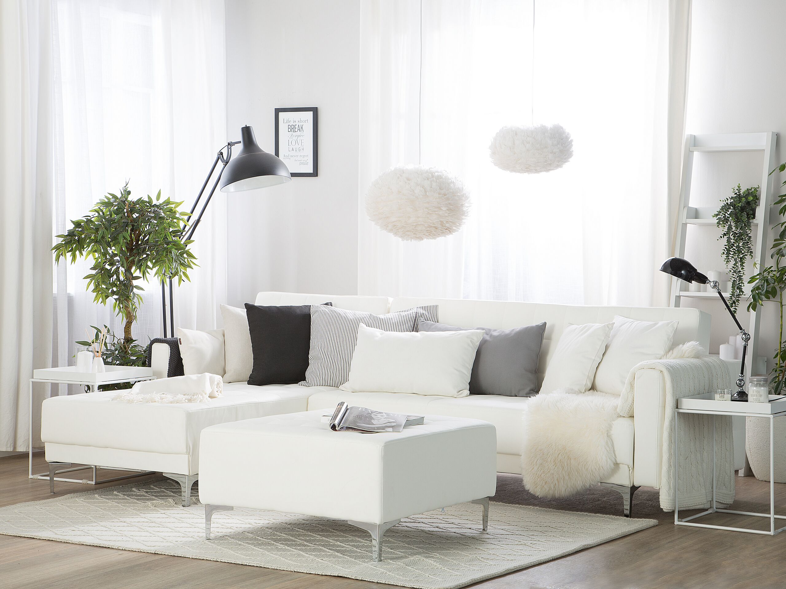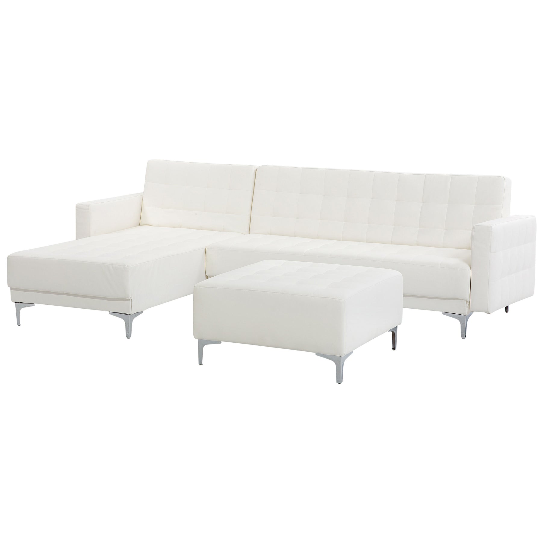Beliani-ABERDEEN-Hoekslaapbank ottomaan-Wit-Rechts-267 cm-Kunstleer