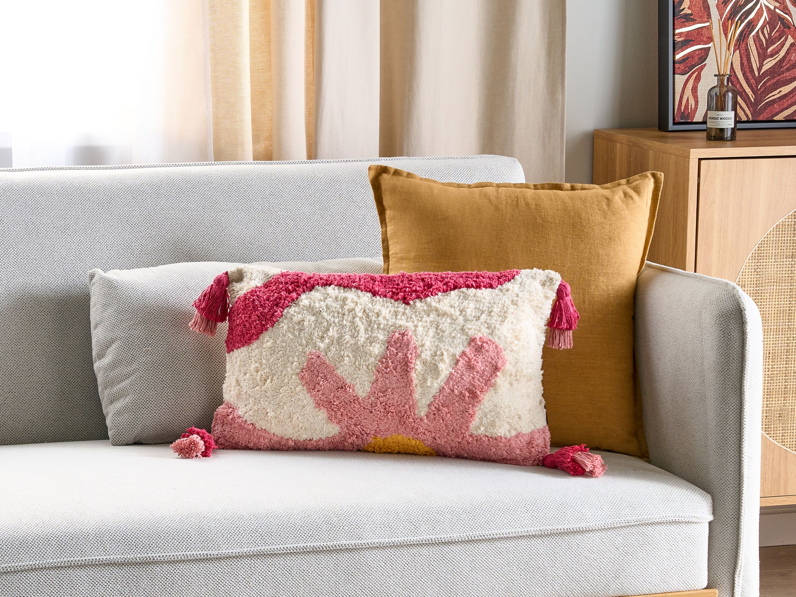 Beliani - ACTAEA - Sierkussen - Roze|Wit - Katoen