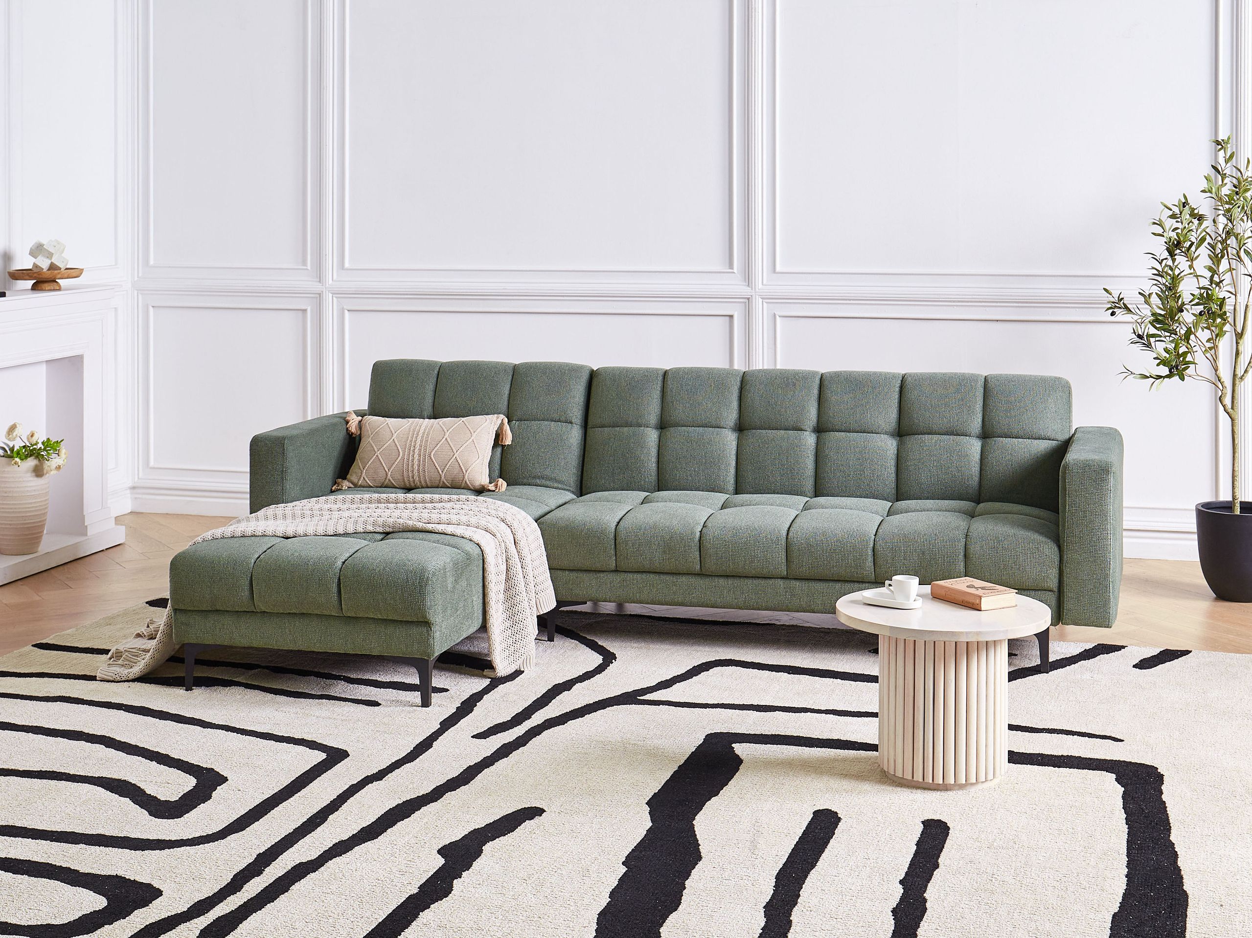 Beliani - ALNES - Slaapbank - Donkergroen - Rechtszijdig - Stof