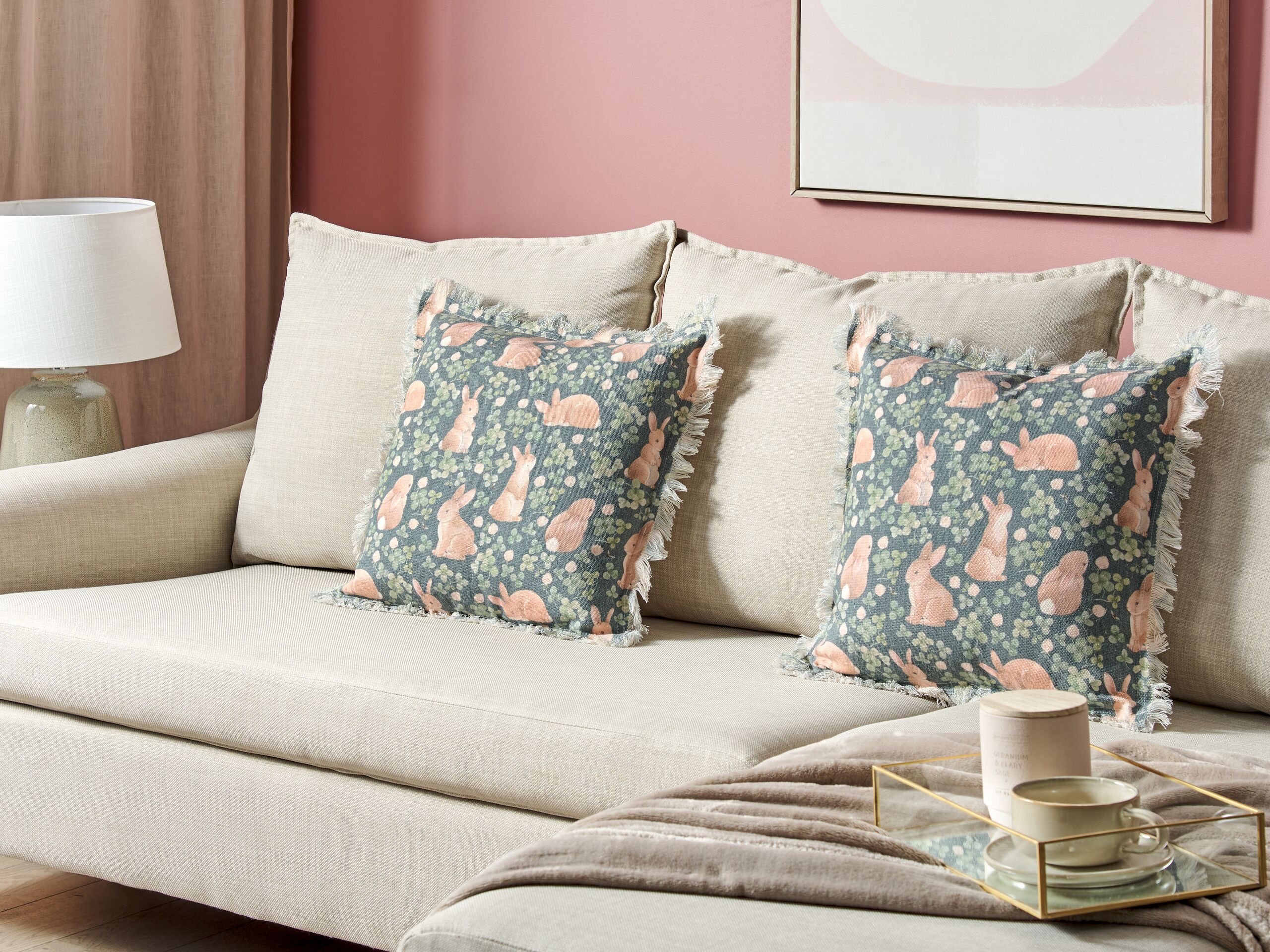 Beliani-ALSTROEMERIA-Sierkussen set van 2-Groen-45 x 45 cm-Katoen