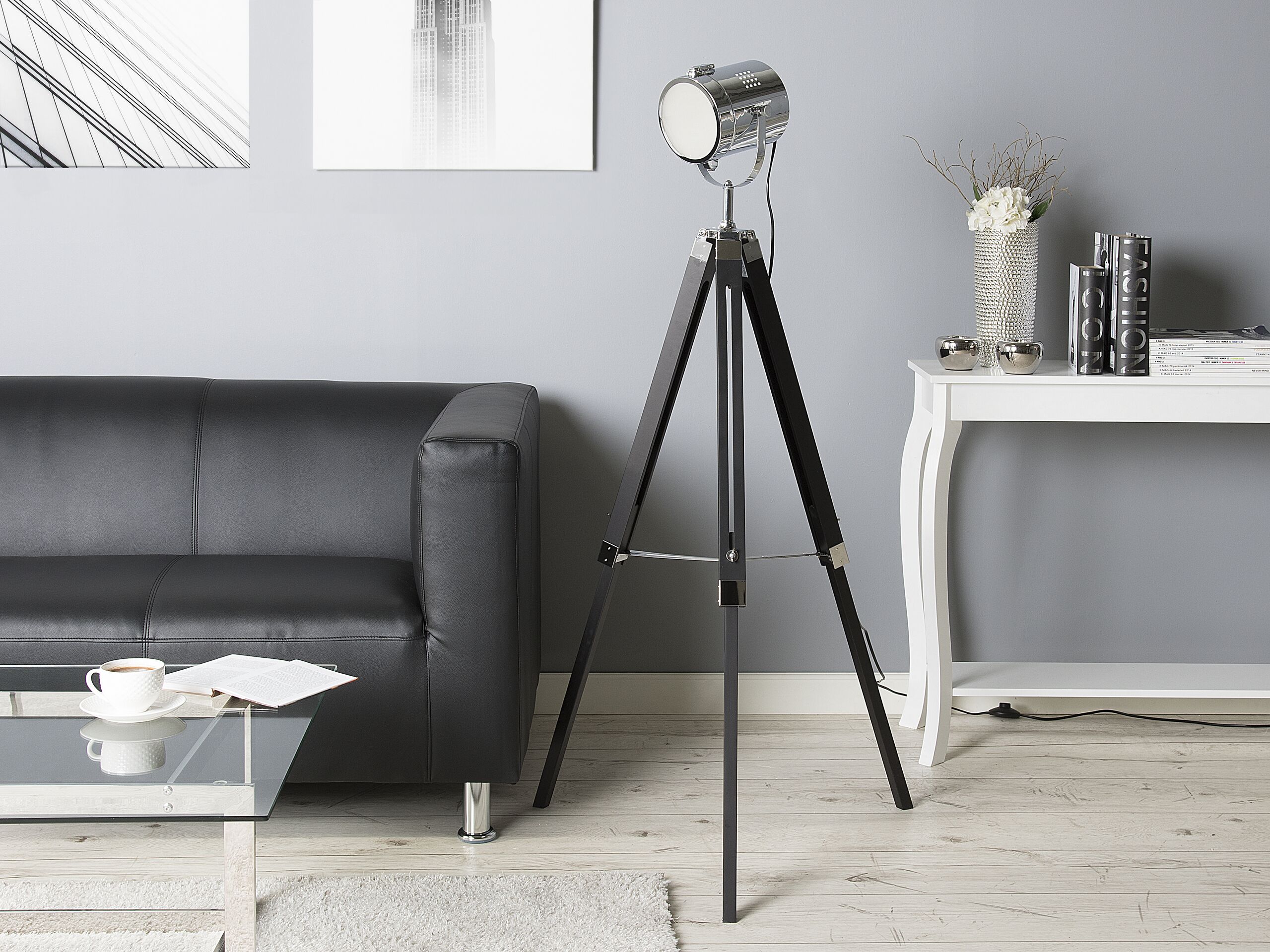 Beliani - ALZETTE - Staande lamp - Zwart - Dennenhout
