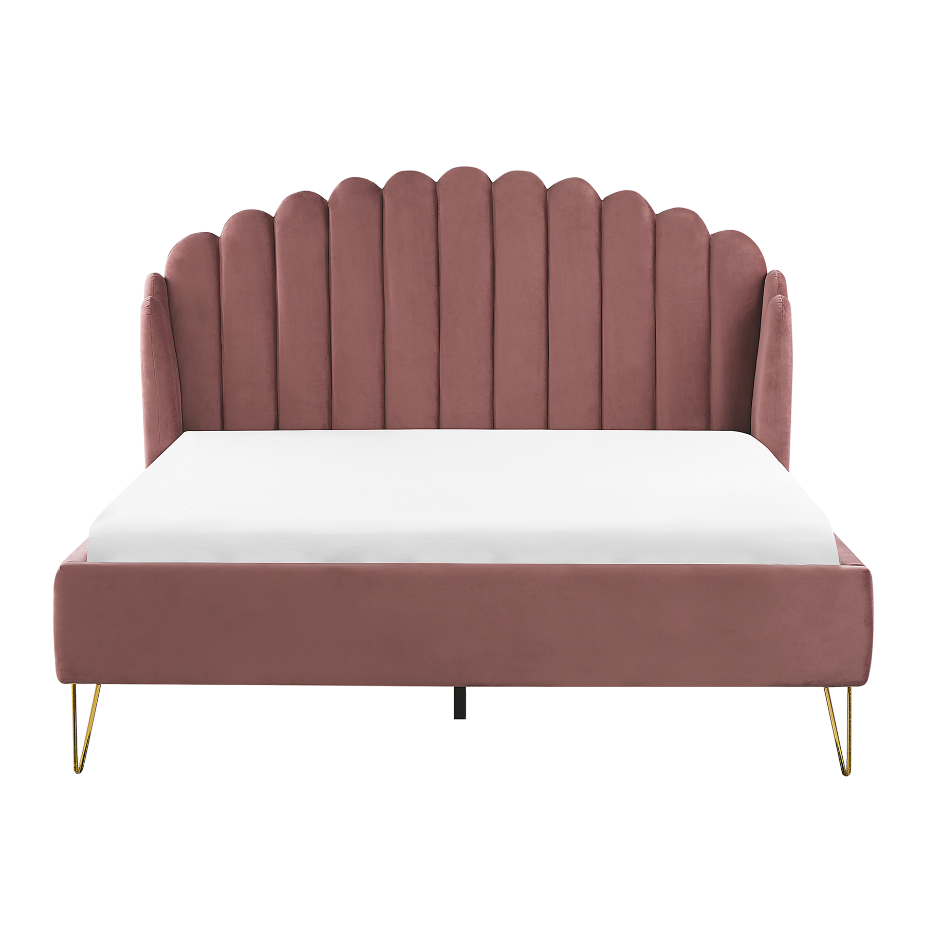 Beliani - AMBILLOU - Tweepersoonsbed - Roze - 160 x 200 cm - Fluweel