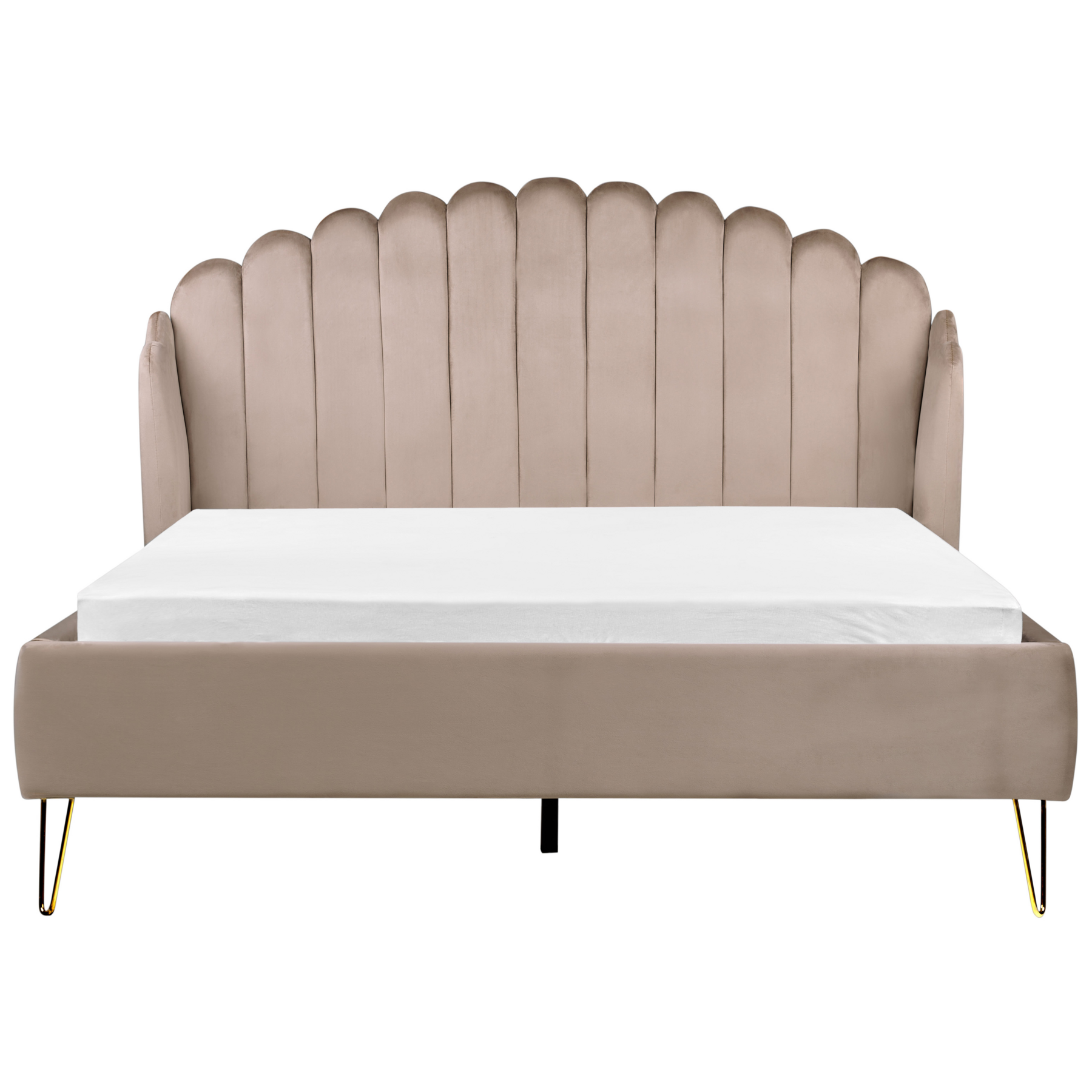 Beliani - AMBILLOU - Tweepersoonsbed - Taupe - 160 x 200 cm - Fluweel