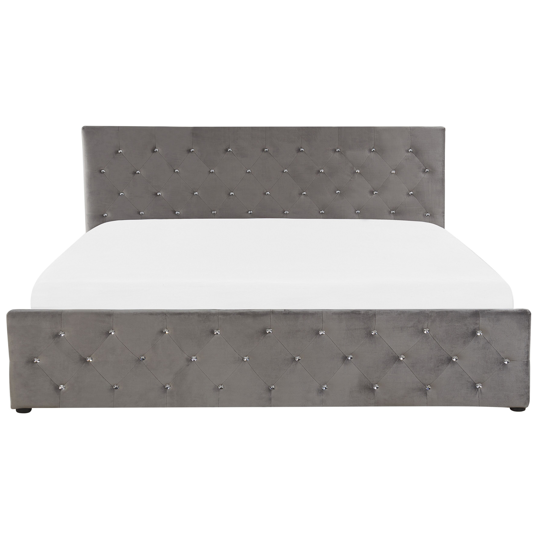 Beliani-AMIENS -Bed met opbergruimte-Grijs-180 x 200 cm-Fluweel